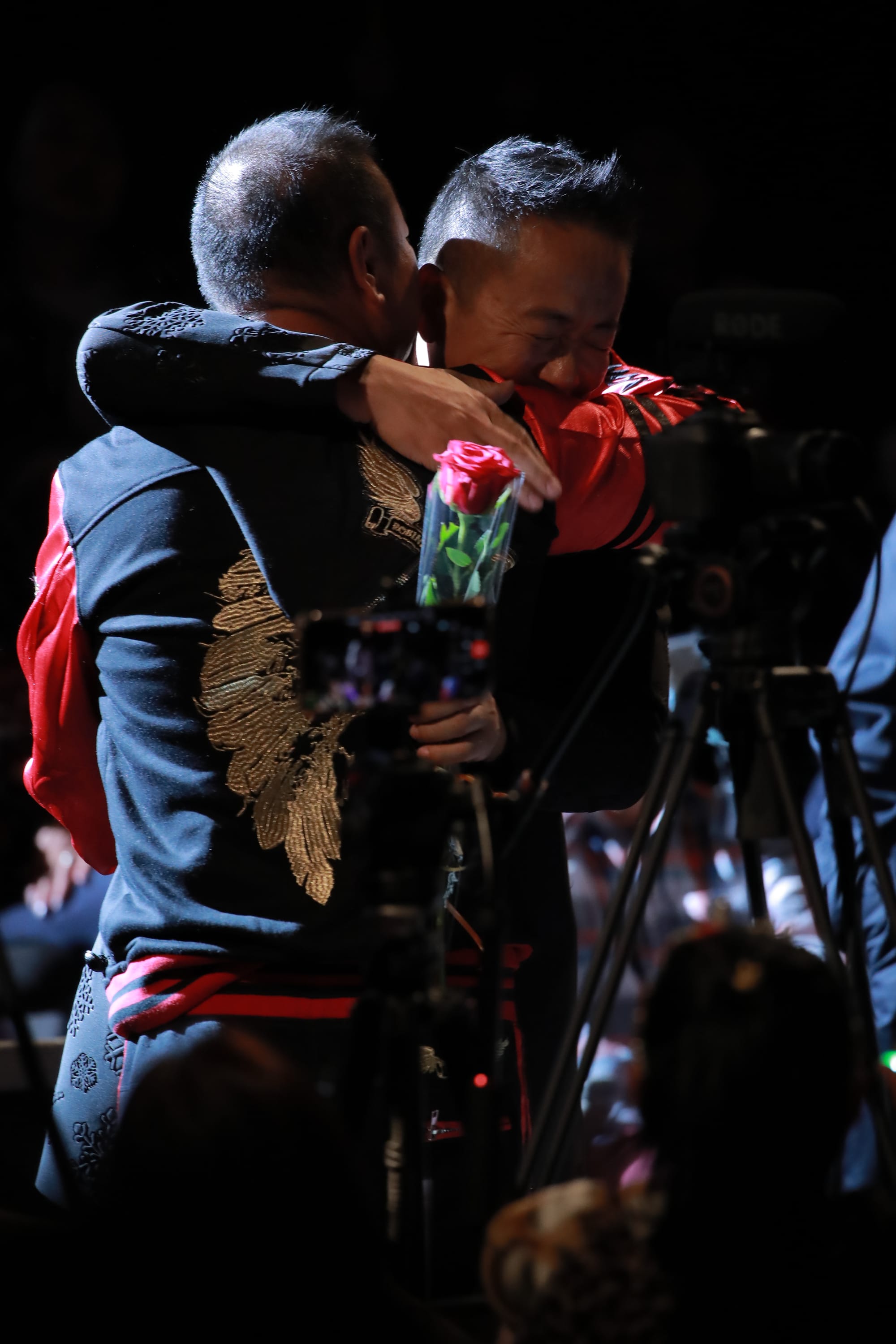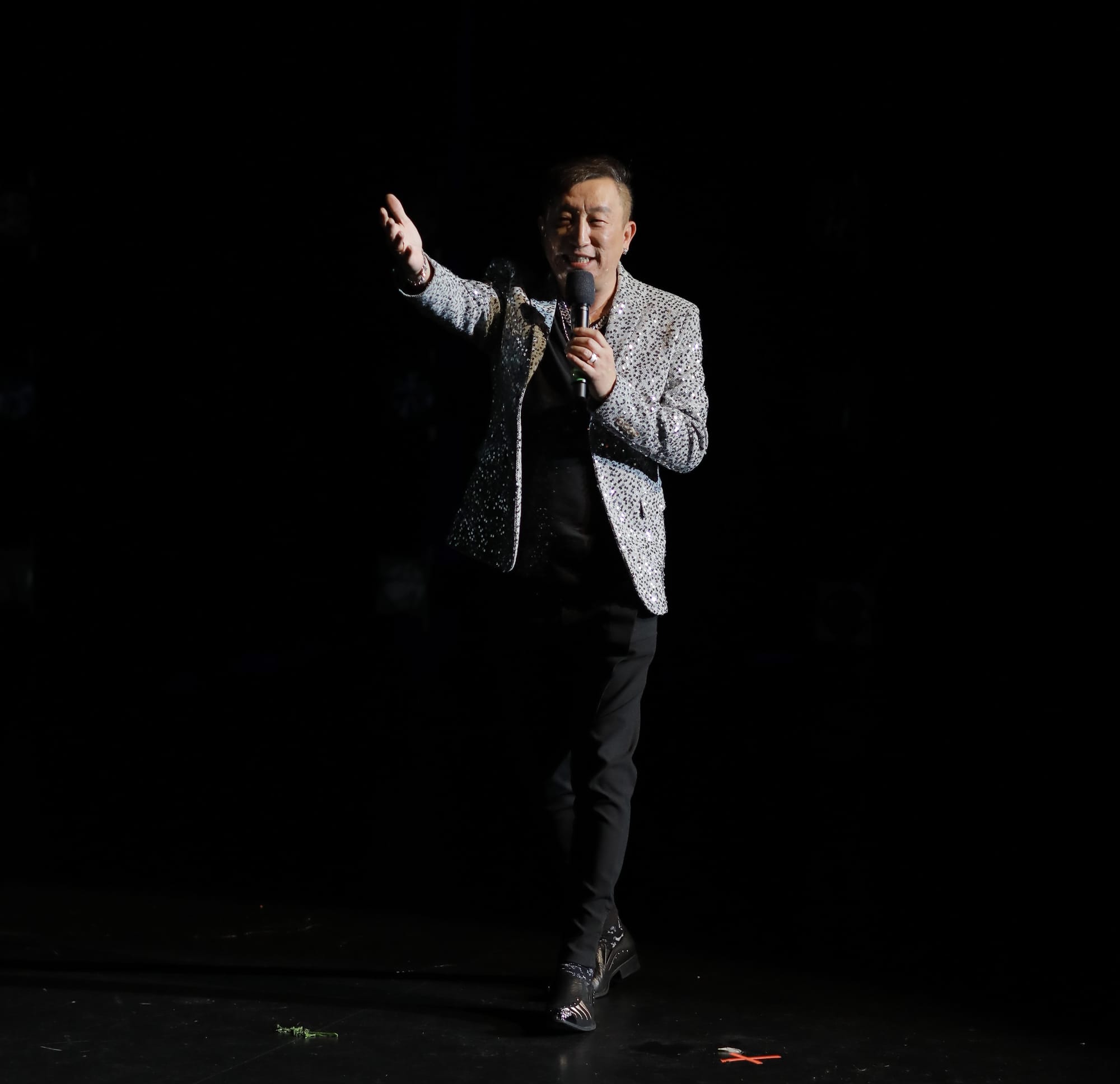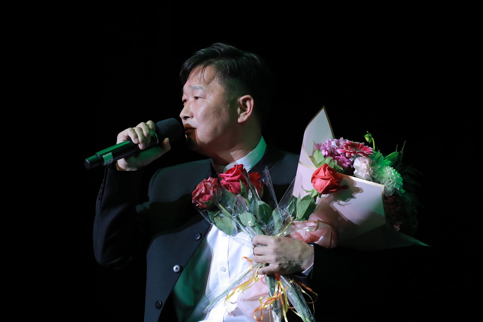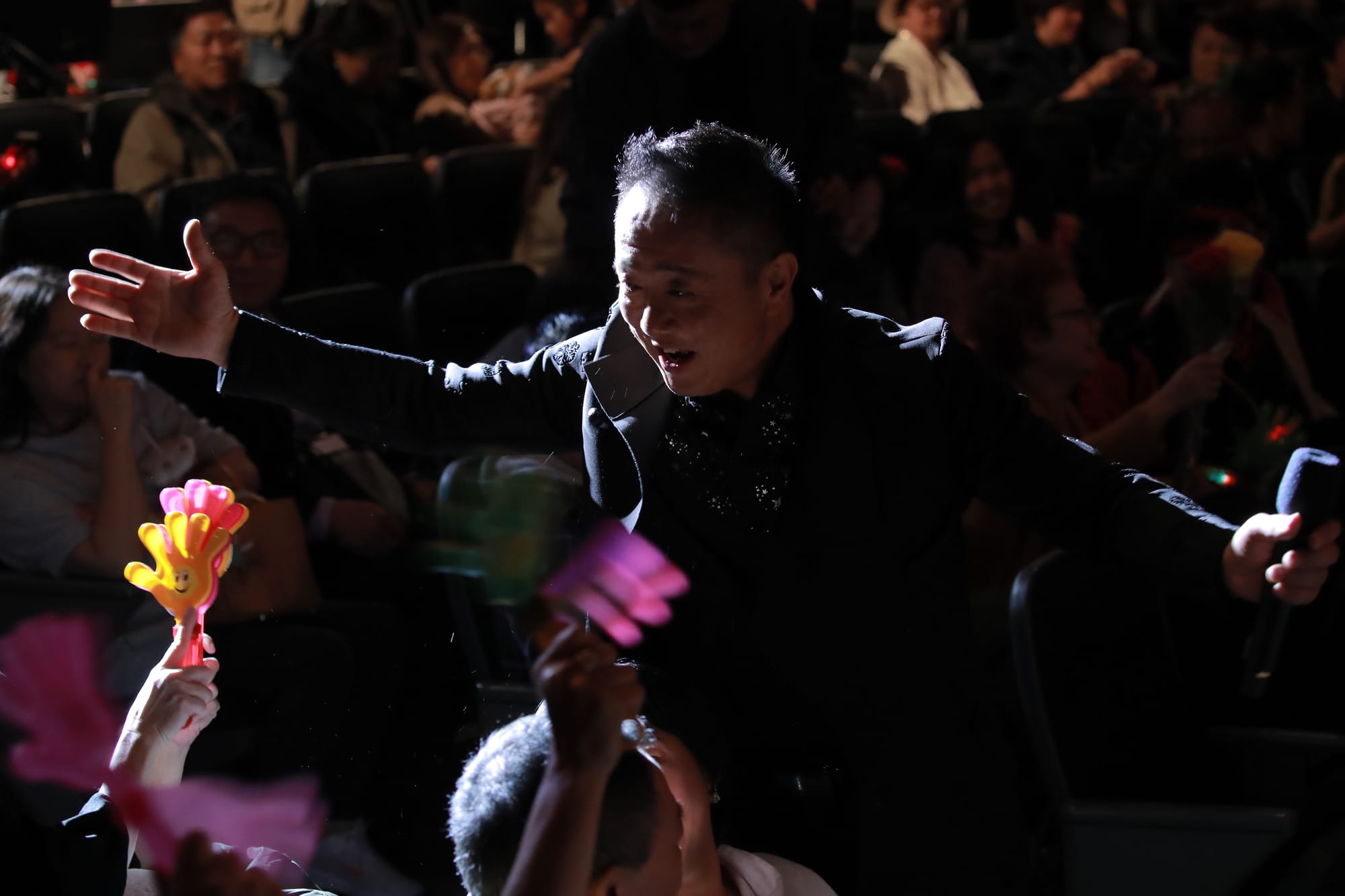 临近尾声,大宝哥干脆边唱边走下台来,与观众热情互动,收获了众多的献花、掌声、问候、鼓励和欢呼声!