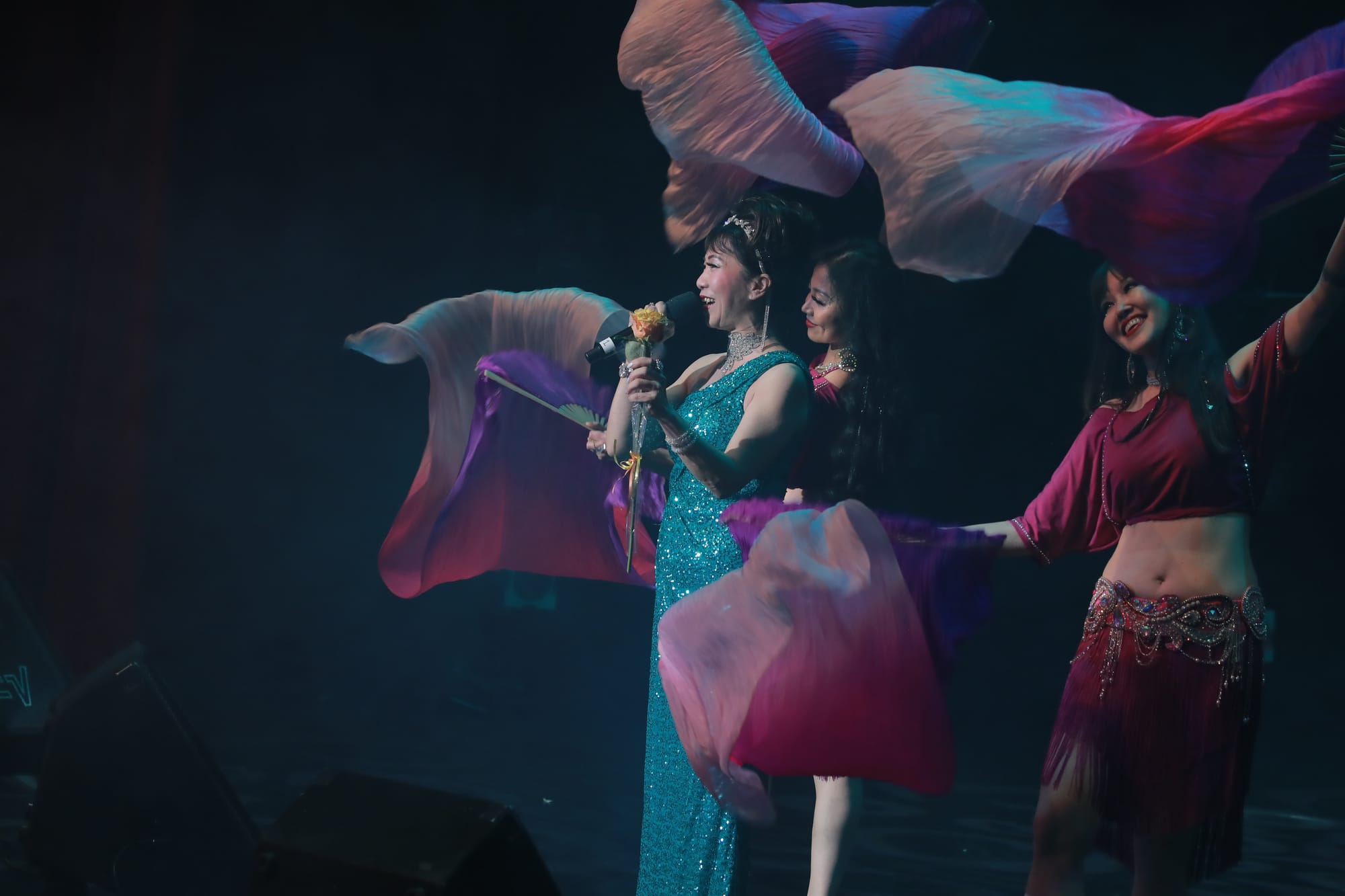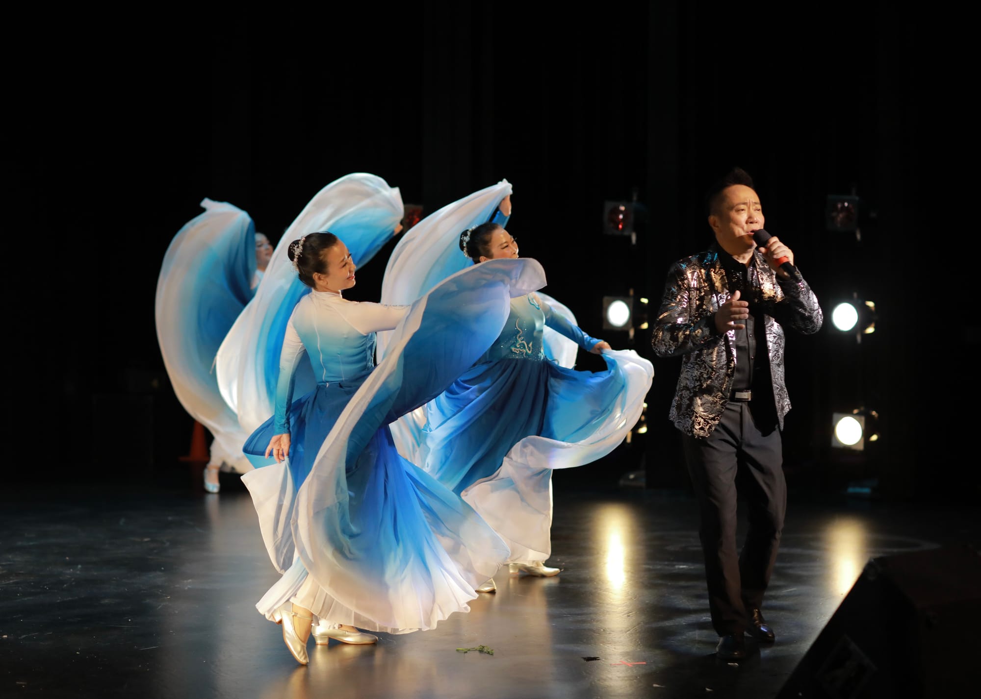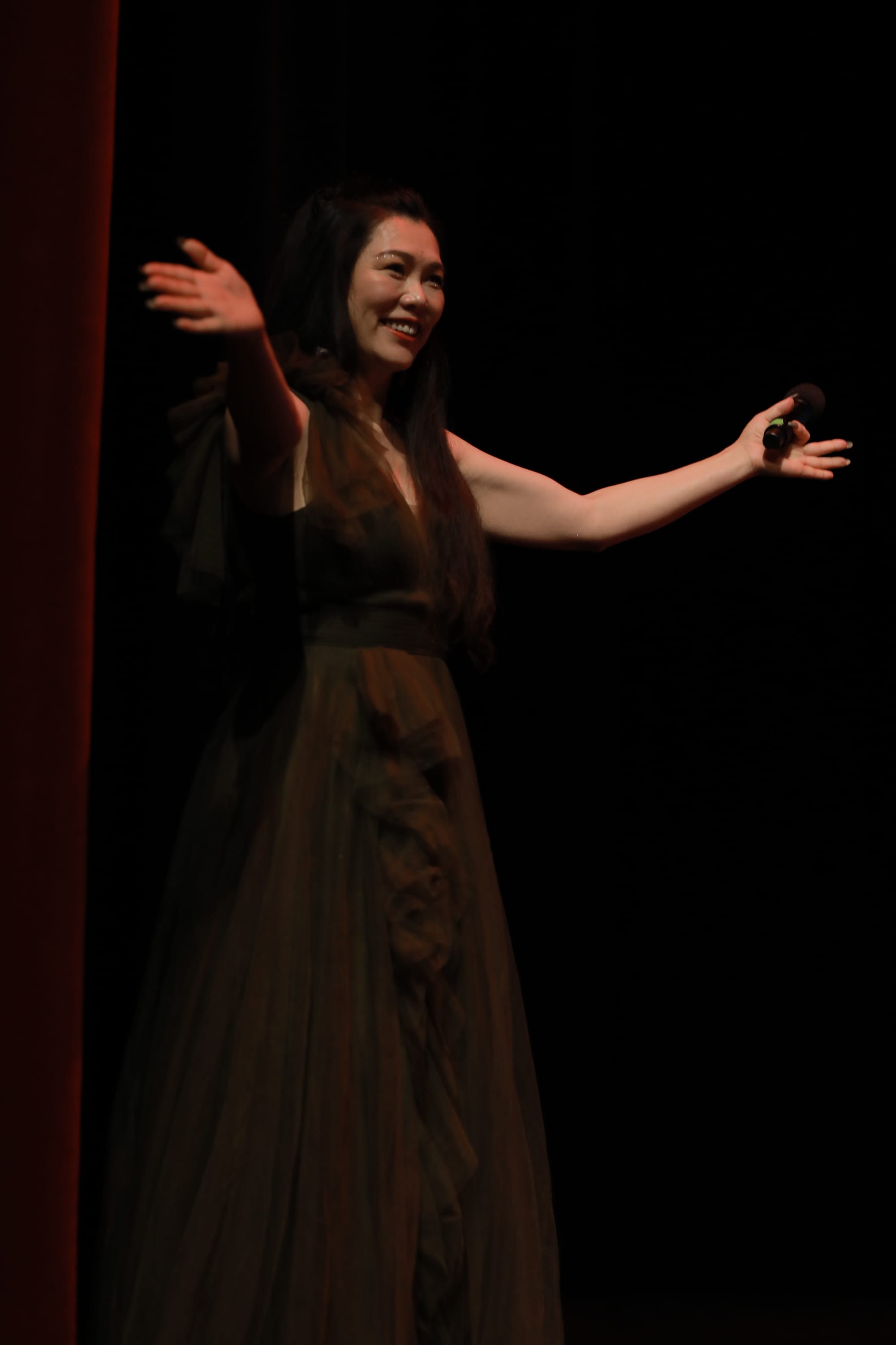 温哥华知名女歌手梁宝儿也前来给好友助兴。她以其动人的嗓音和出色的音乐才华而受到广泛喜爱。她的音乐风格多样,涵盖了流行、民谣以及传统华语歌曲,深受不同年龄层听众的欢迎。今晚,她的表演展现了极强的舞台魅力和感染力。