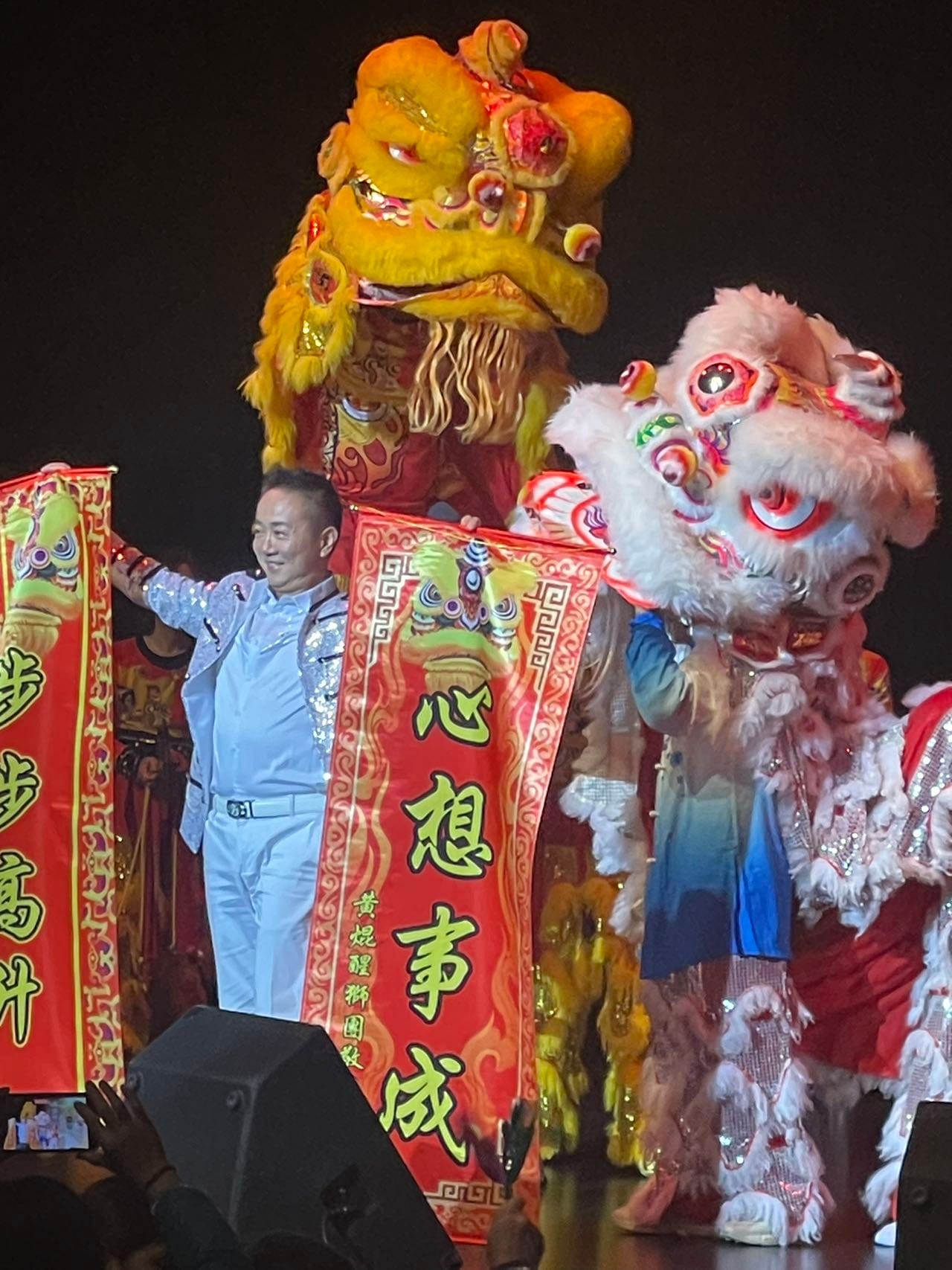 演唱会在舞狮队锣鼓喧天、两只狮子威猛灵动、跳跃翻腾的精彩表演中开场。