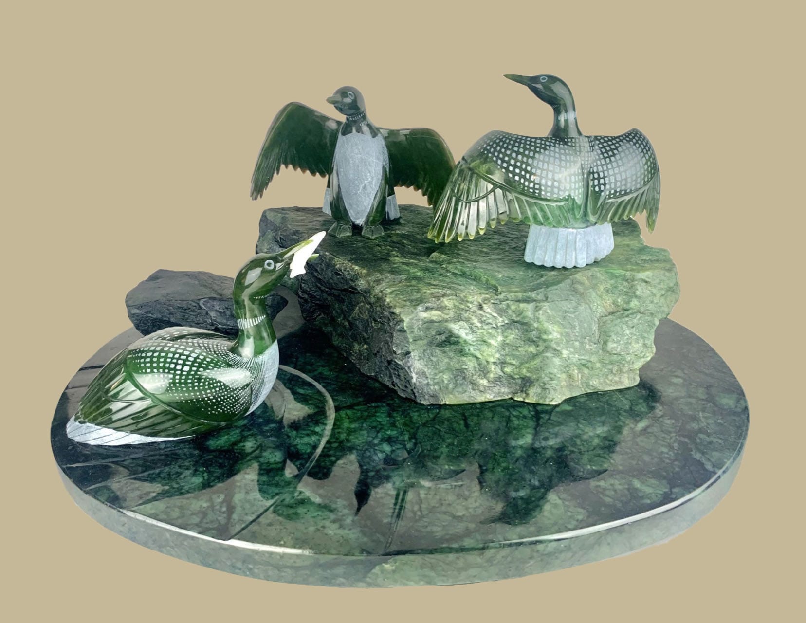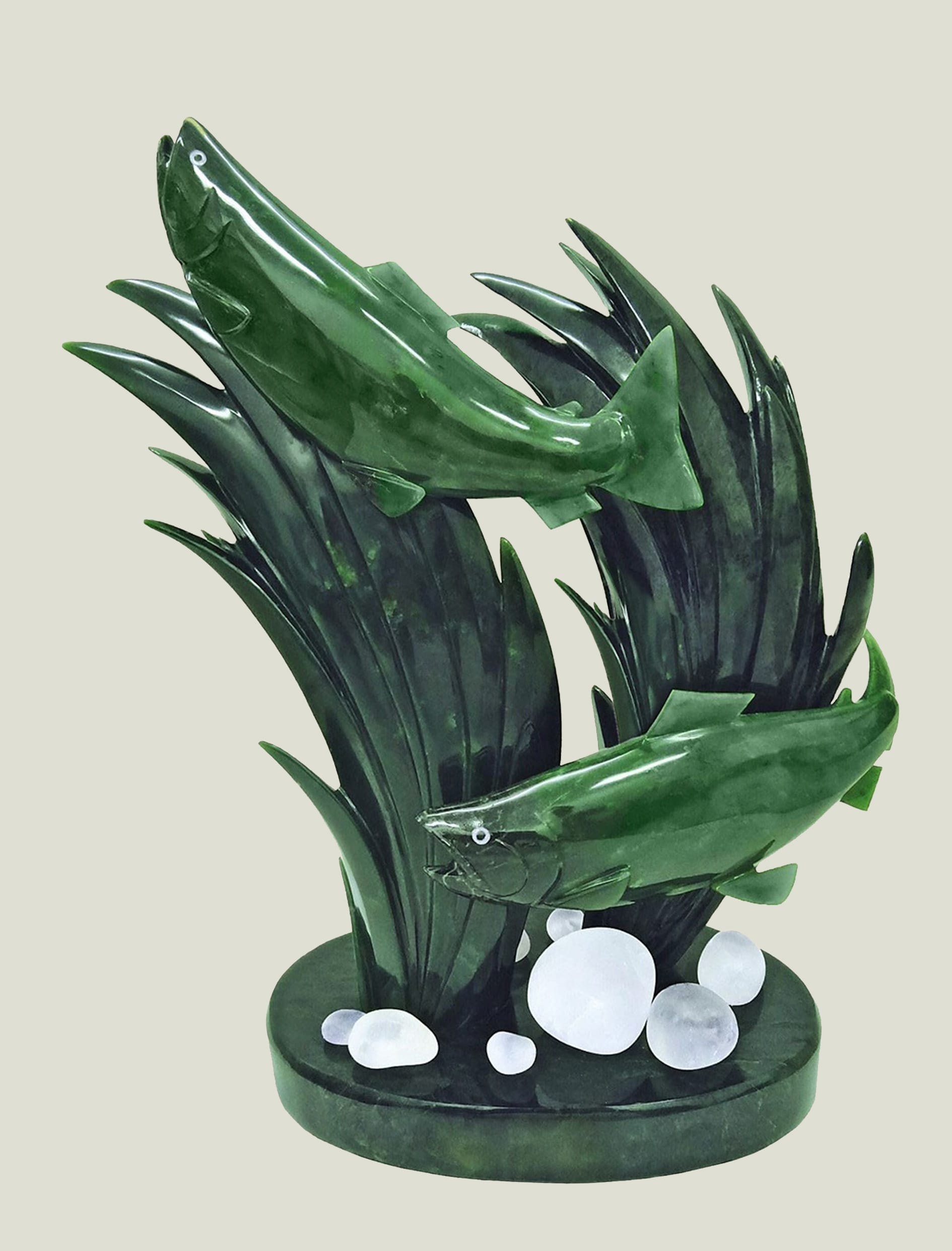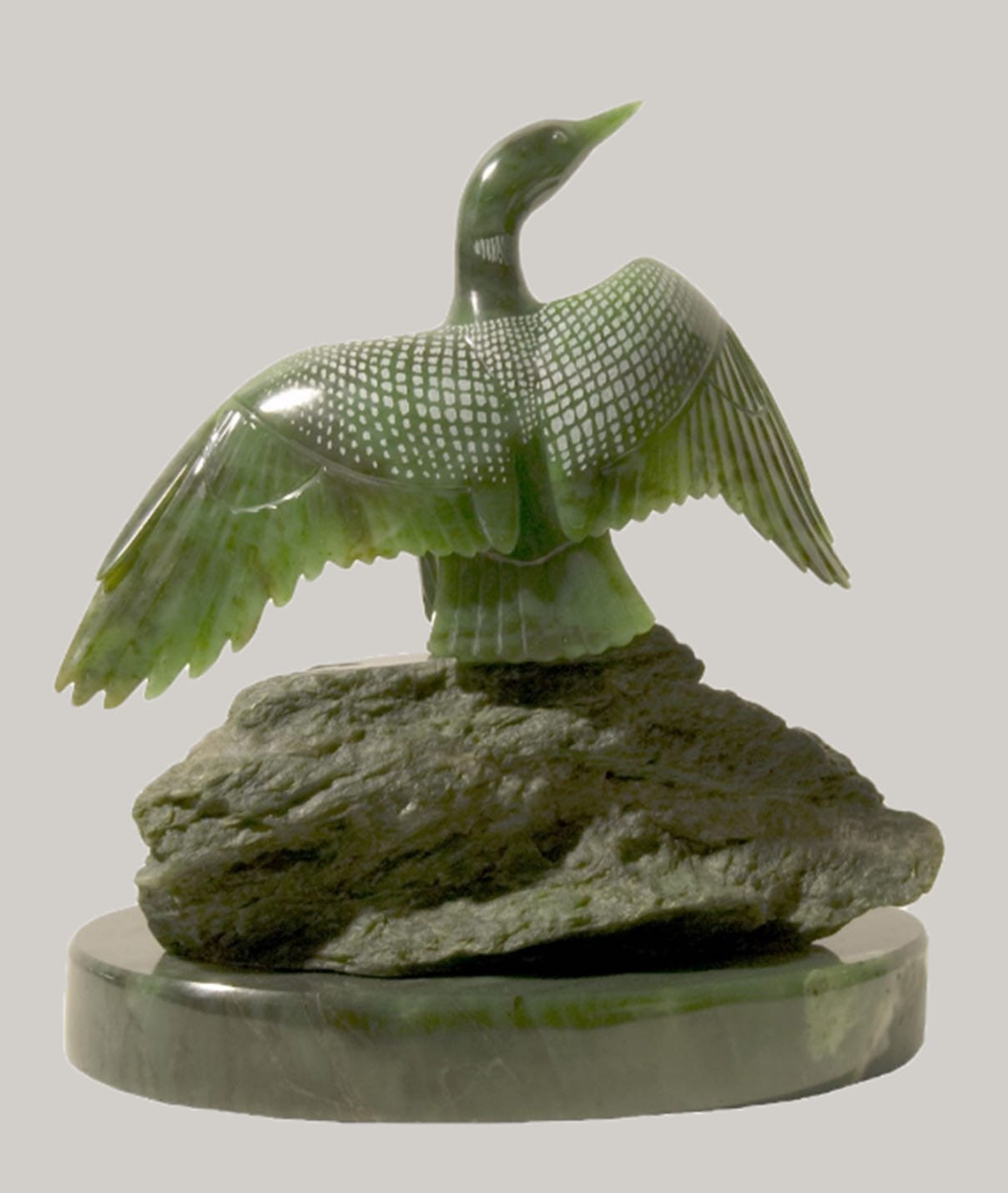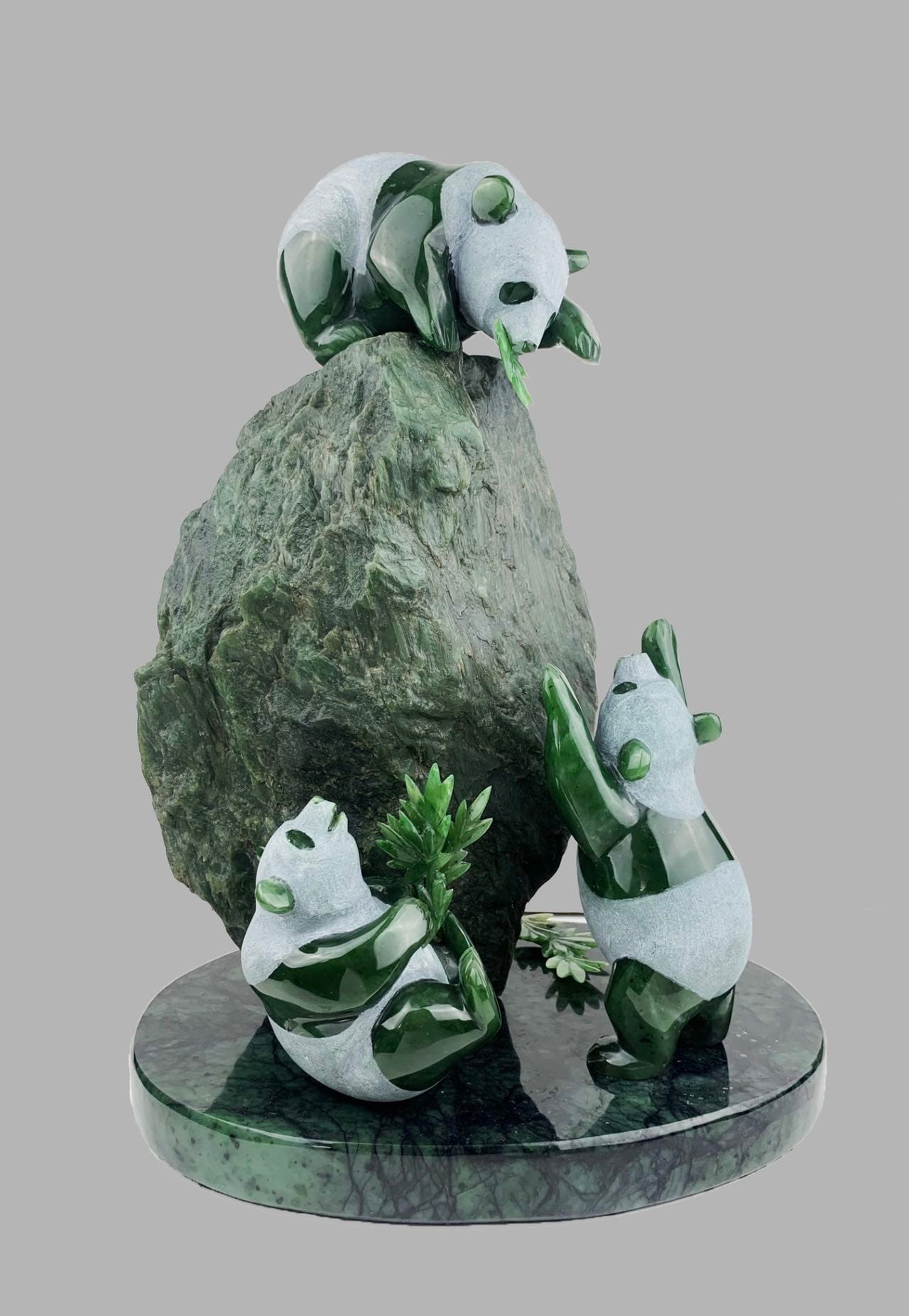 記得你曾多次對我提起過,加拿大玉石相當符合東西方人對玉的審美標準。人們善於開發利用這一自然寶石經濟價值的同時,從美學角度充分挖掘其中特有的文化內涵,使加碧成為弘揚玉文化不可或缺的資源。加碧玉石從自然玉材到玉雕的轉變,體現了人類利用開發自然資源為文化藝術服務的特徵,成為了國際交往紐帶,催生了東西方相互交融的跨界玉文化,為推動人類文明進步發揮著特殊作用。我知道,你原來在國內是從事象牙雕刻,而且是卓然有成,但上世紀八十年代末,聯合國為保護野生大象而禁止象牙貿易,這無異對你的藝術事業是釜底抽薪,被迫轉向玉石雕刻。然而,這又為你開闢了另一個發揮個人藝術天賦的無限空間。