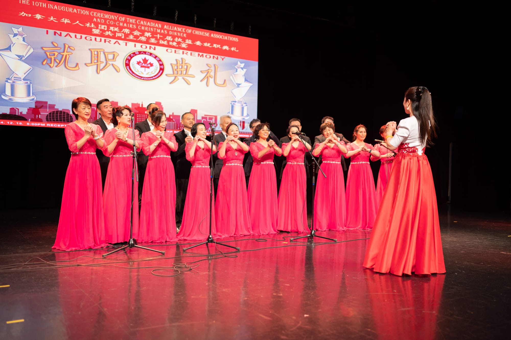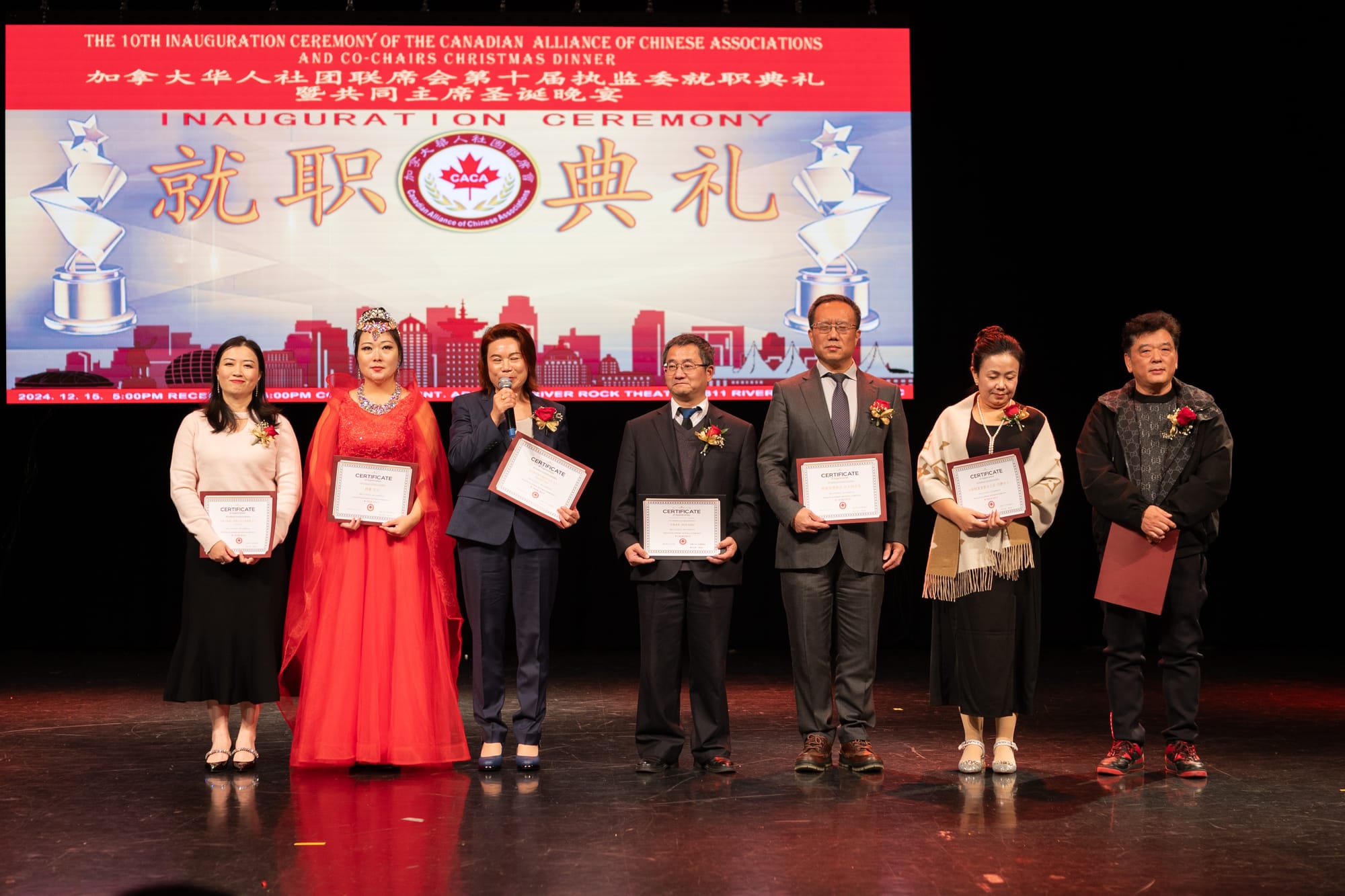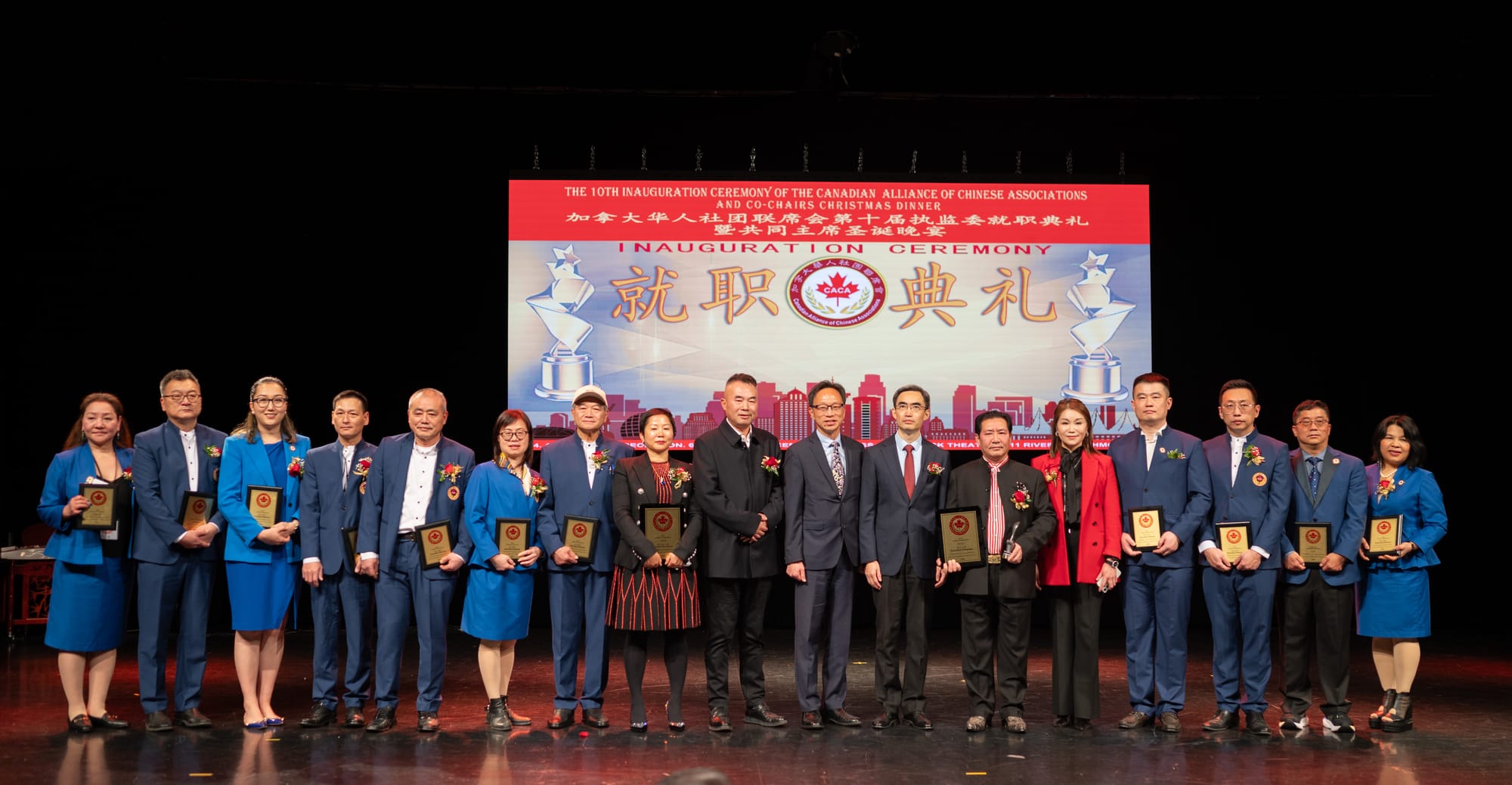 【高度传媒首席记者 王子游报道】12月15日傍晚,华灯初上,夜色迷人。列治文河石娱乐度假酒店宴会大厅灯火辉煌,热闹非凡。来自大温各地的数百名华人汇聚一堂,庆祝加拿大华人社团联席会第十届执监委就职典礼隆重举行。加拿大政府三级政要和本地众多华人社团、以及中国侨商联合会等纷纷发来贺电,对本届执监委就职表示热烈祝贺(附后)。