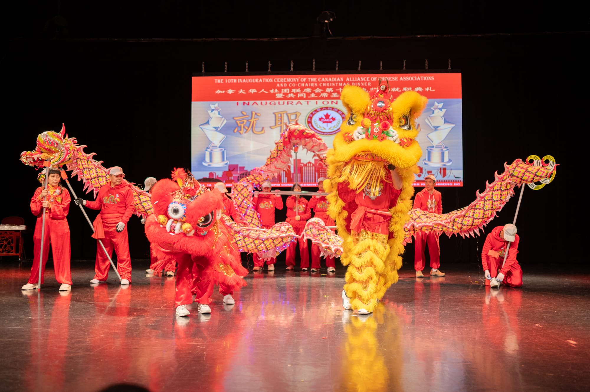 晚上6点30分,就职典礼在锣鼓喧天的舞龙舞狮表演中隆重开场!