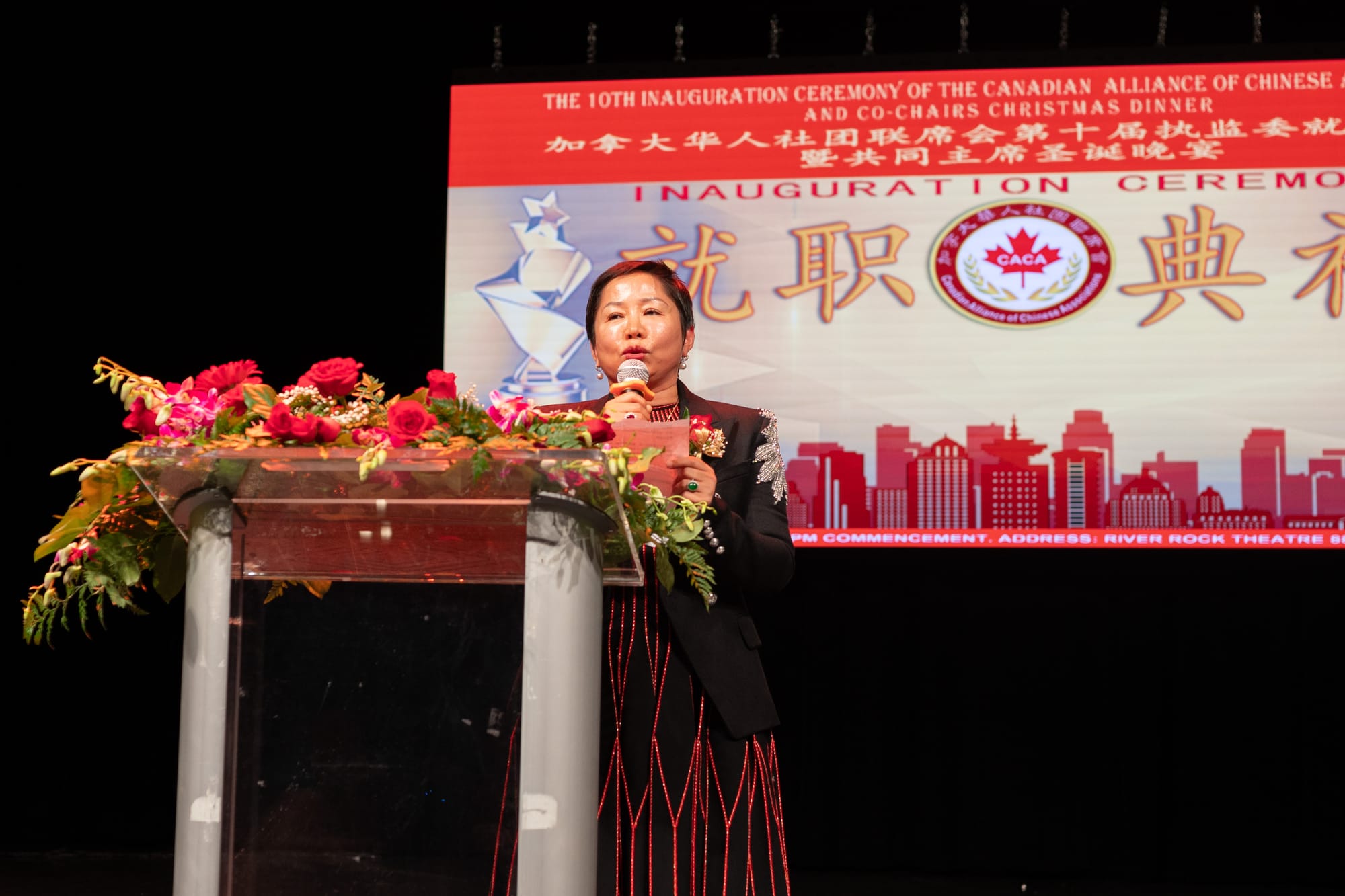 加拿大华人社团联席会新晋第十届执行副主席洪琦璟女士致辞,她表示,自己非常荣幸能够加入这个充满活力和凝聚力的社团大家庭。作为褚主席的副手,自己一定在其位谋其职,在褚主席的带领下,与全体执监委通力合作,共同努力推进社团工作的规范化、多元化发展。将竭尽所能,为各会员单位创造一个互助共赢、和谐发展的平台。让我们携手并进,凝心智慧与力量,共同为建设一个更加美好的社区而努力奋斗!期待未来大家的支持和合作,谢谢!