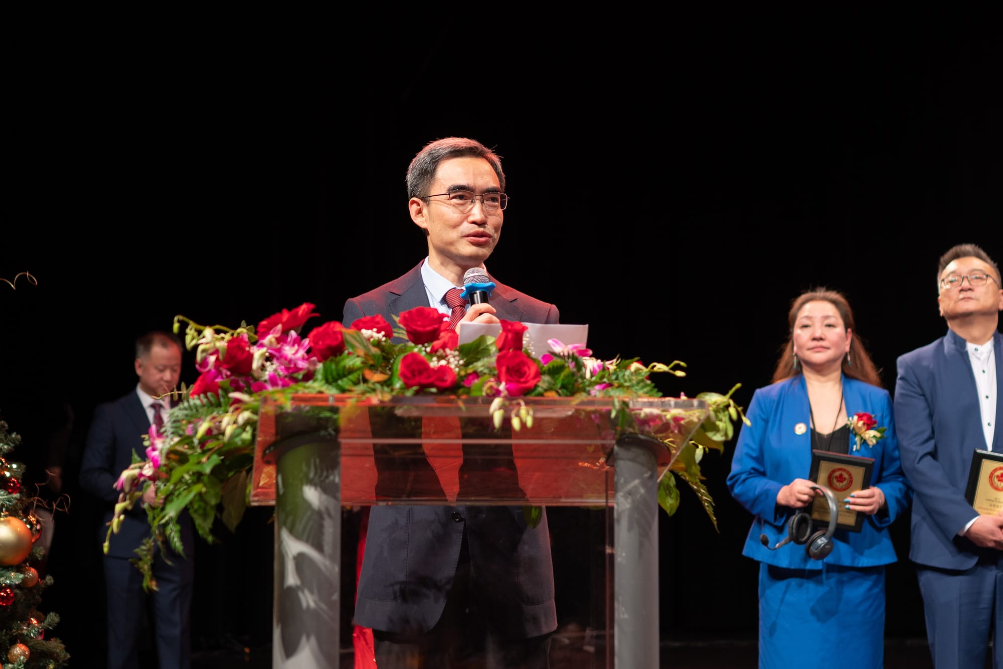 中国驻加拿大总领事杨舒先生致辞,他代表中国驻温哥华总领事馆,向新一届联席会的执监委团队就职表示热烈的祝贺!他指出,加拿大华人社团联席会成立于2008年汶川大地震之后的全球震灾善举之中,自成立之初就以实际行动践行着对祖籍国的关心与支持。与此同时,也在一次次的爱心公益善举中,不断对当地社区做出回馈,为建设加拿大传统多元文化社会做出了积极的贡献。16年来,联席会凝聚着众多华人社团的力量,已经成为海外具有影响力的华人侨团之一,在帮助华侨华人更好的融入主流社会,促进中加文化交流互鉴发挥着重要的作用。联席会上一届执监委团队在薛晓梅执行主席的带领之下,紧密联系各界,在弘扬中华传统文化、反对种族歧视、促进中加民间友好等等方面发挥了重要的作用,做了大量有益的工作。春节庙会、中国文化艺术节、多元文化嘉年华等等联席会的品牌活动,均取得了圆满的成功。他愿借此机会,向薛晓梅执行主席以及上一届执监委团队所付出的努力致以崇高的敬意。希望新一届执监委团队在褚远征执行主席的带领之下,精诚团结,积极进取,为推进中加民间友好,促进中加文化交流以及经贸互动做出更多积极的贡献!