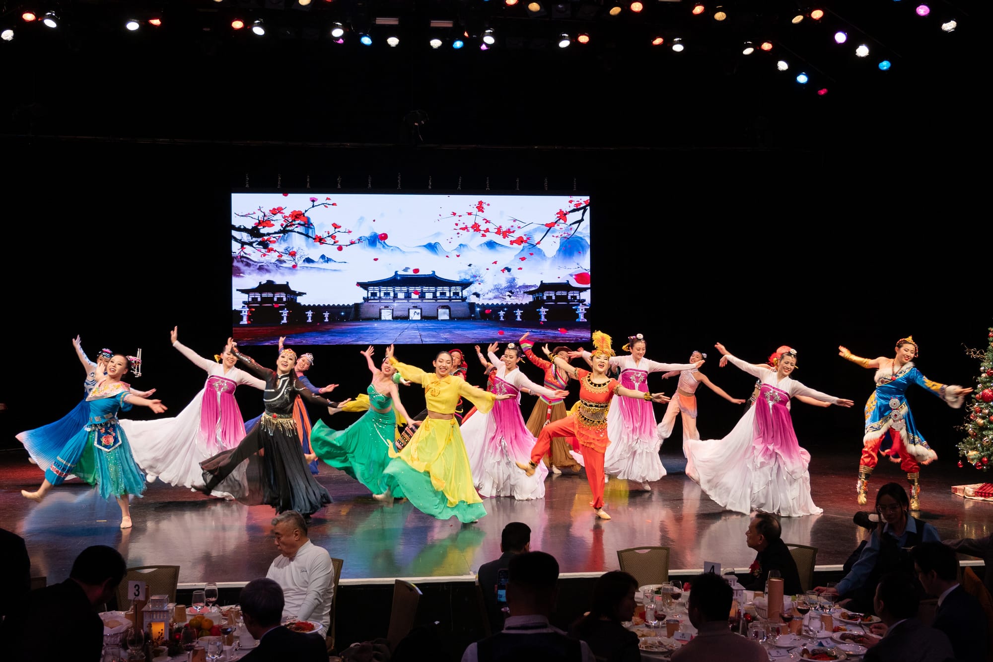 晚宴开始了。来宾们一边品尝着美酒,享用着丰盛的晚餐,一边观看精彩的文艺演出。