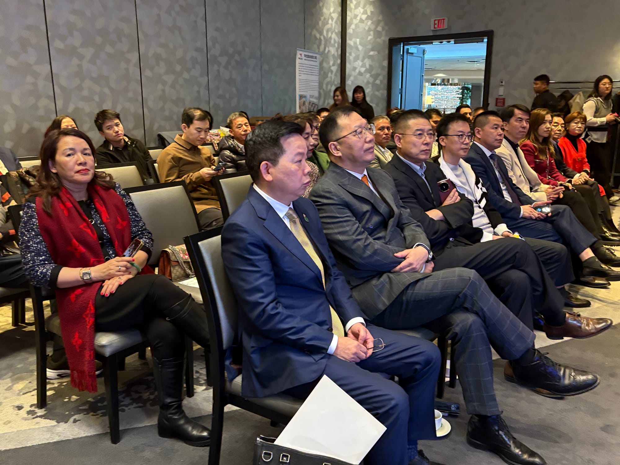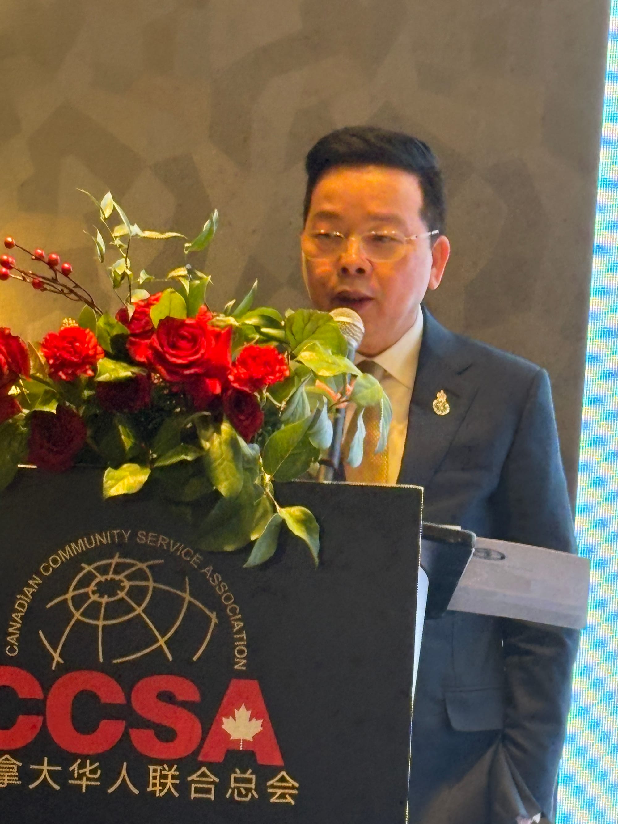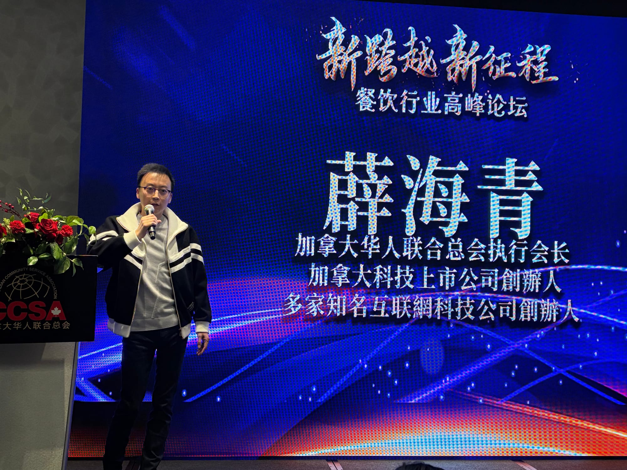 接着,高会长对中餐行业在中国的发展现状和展望进行了主题演讲。他指出,近年来中国餐饮业在快速变化的市场环境中,展现出强大的韧性和活力。目前,中国餐饮业正经历着从传统到现代的转型,标准化发展已成为行业共识。同时,人工智能、大数据、物联网等新兴技术的广泛应用,为餐饮业带来了前所未有的新动力。智能厨房设备和烹饪技术应用,显著提高了运营效率和服务效能。大数据技术助力企业实现精准营销,互联网技术则加强了供应链管理。通过这几天的交流和考察活动,我们也大致了解了温哥华中餐业发展的现状,发现在标准化和科技化等方面,与国内的发展还是有一定差距的。我相信我们未来在这些方面,会有广泛的合作前景。第二点,就是品牌化与连锁化的经营。这已经成为中国餐饮业发展的重要趋势。譬如,北京、南京等餐饮老字号通过创新和传承持续焕发新活力。第三点,就是民族特色餐饮的多元化发展。这些民族特色餐饮品牌注重文化融合与创新,通过品牌化与连锁化经营,数字化转型以及国际化发展,不断拓宽市场边界。随着一带一路倡议的推进,民族特色餐饮将成为连接传统文化与现代社会的桥梁,为世界餐饮文化多样性贡献中国智慧。