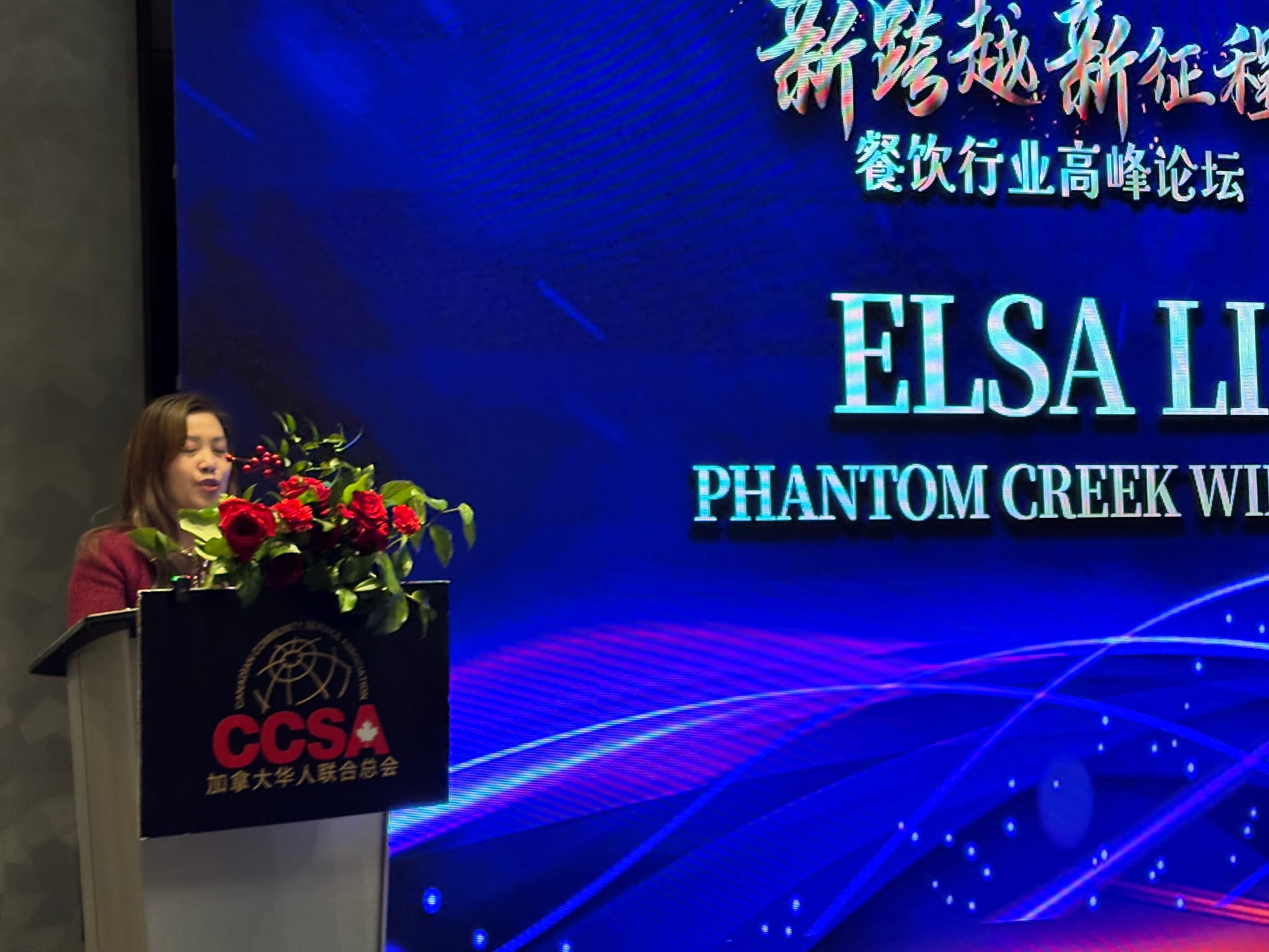 知名葡萄酒品牌幻影溪酒庄代表ELSA LI,就中餐和红酒如何互相搭配,以及加拿大红酒品牌如果保持世界领先地位,给大家做了演讲。