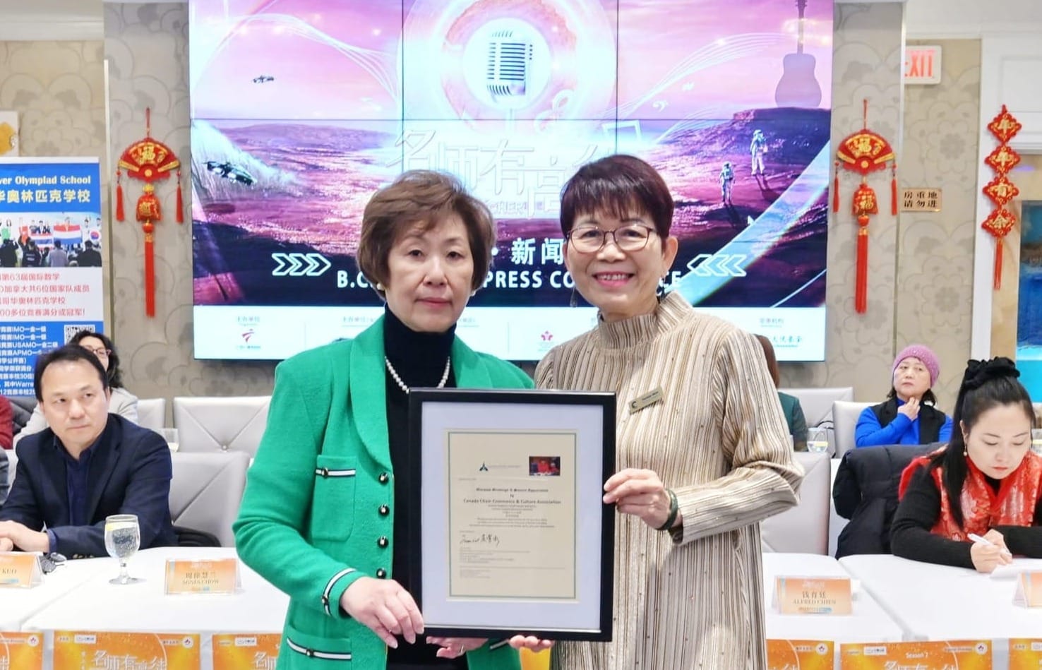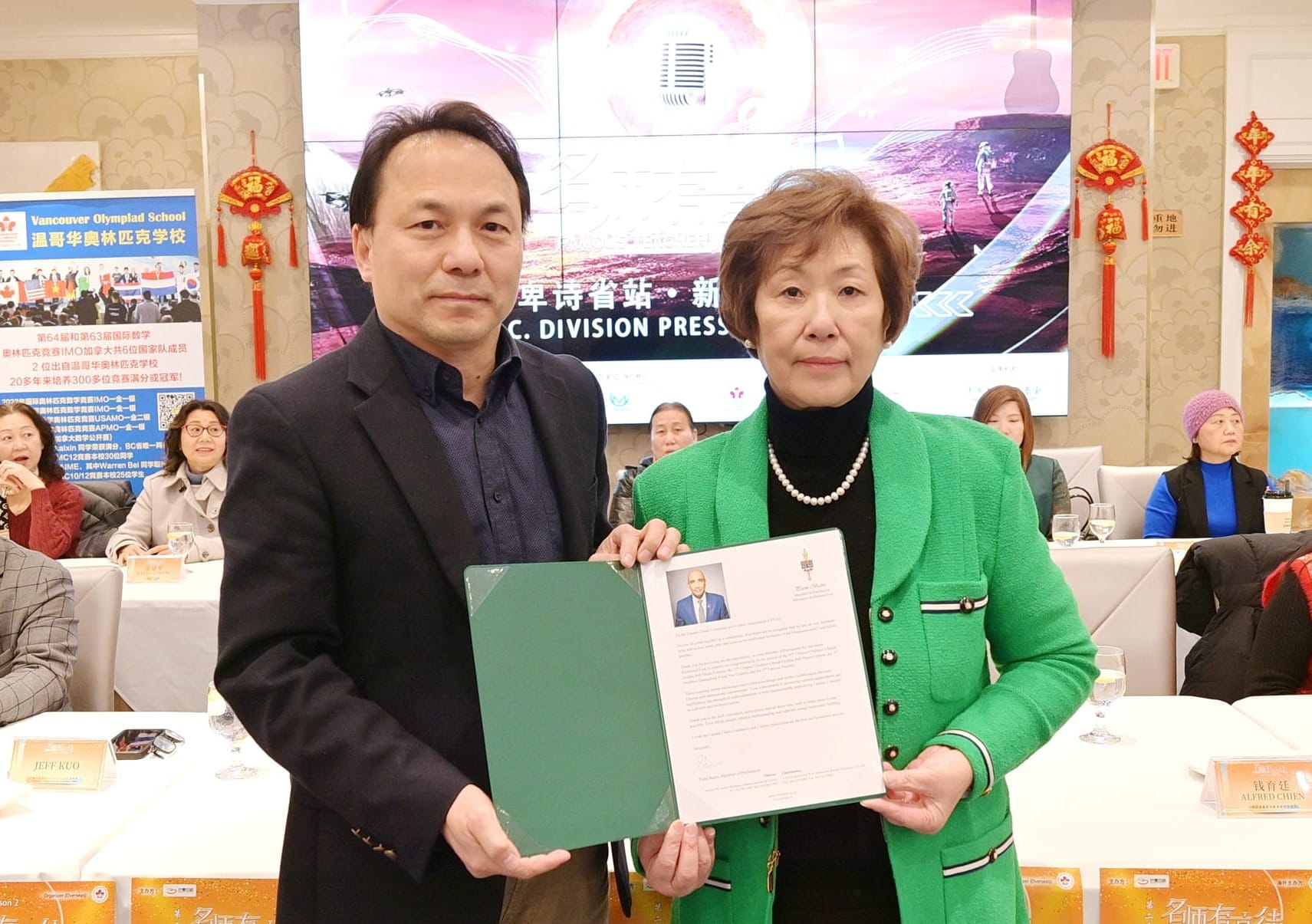 省议员屈洁冰女士讲话,对加拿大有机会利用《名师有高徒》音乐教育平台培养新生音乐人才的新摸式表示欢迎与支持,并给加拿大商务文化协会颁发了表扬感谢状,对他们愿意发动组织好这项事业表示感谢与赞扬。