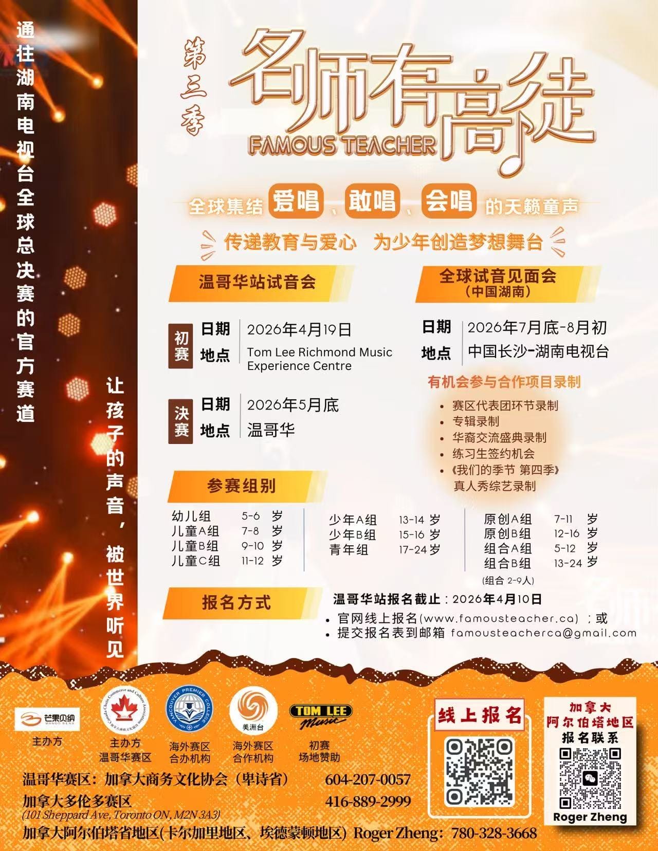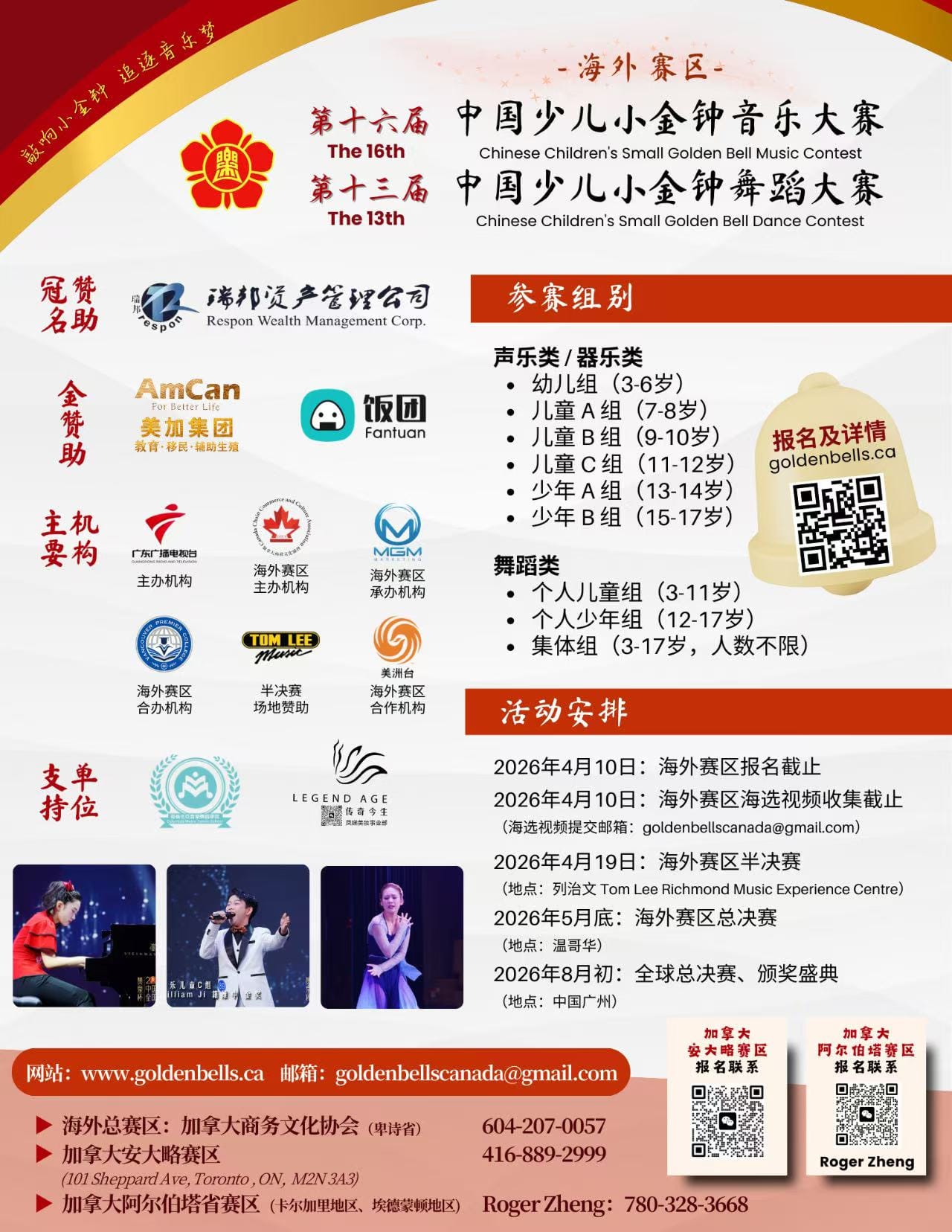 两届大赛报名截止时间均为2026年4月10日,半决赛2026年4月19日于列治文Tom Lee Richmond Music Experience Centre举行,于2026年5月底举行赛区总决赛。