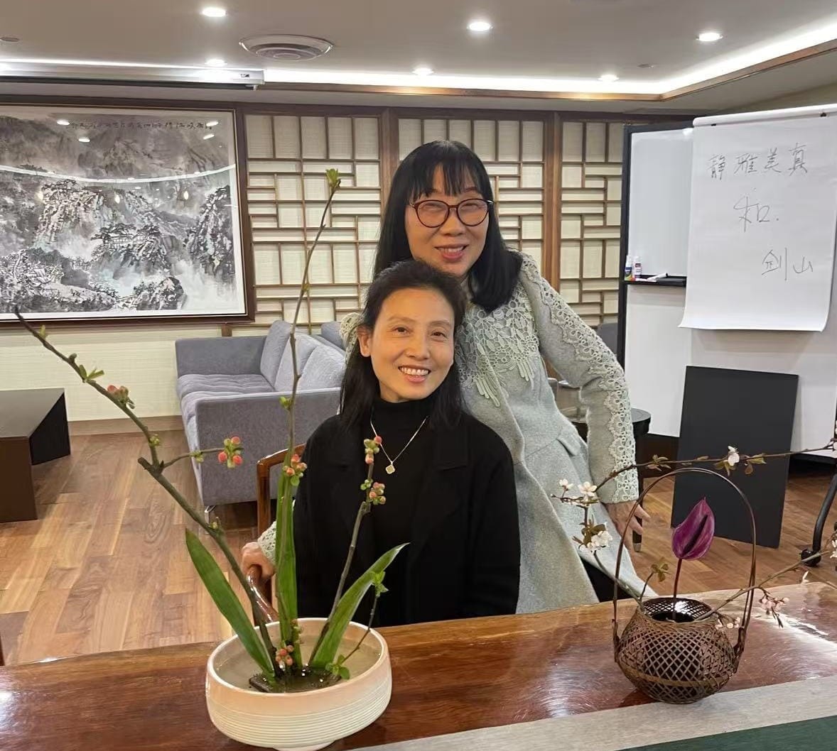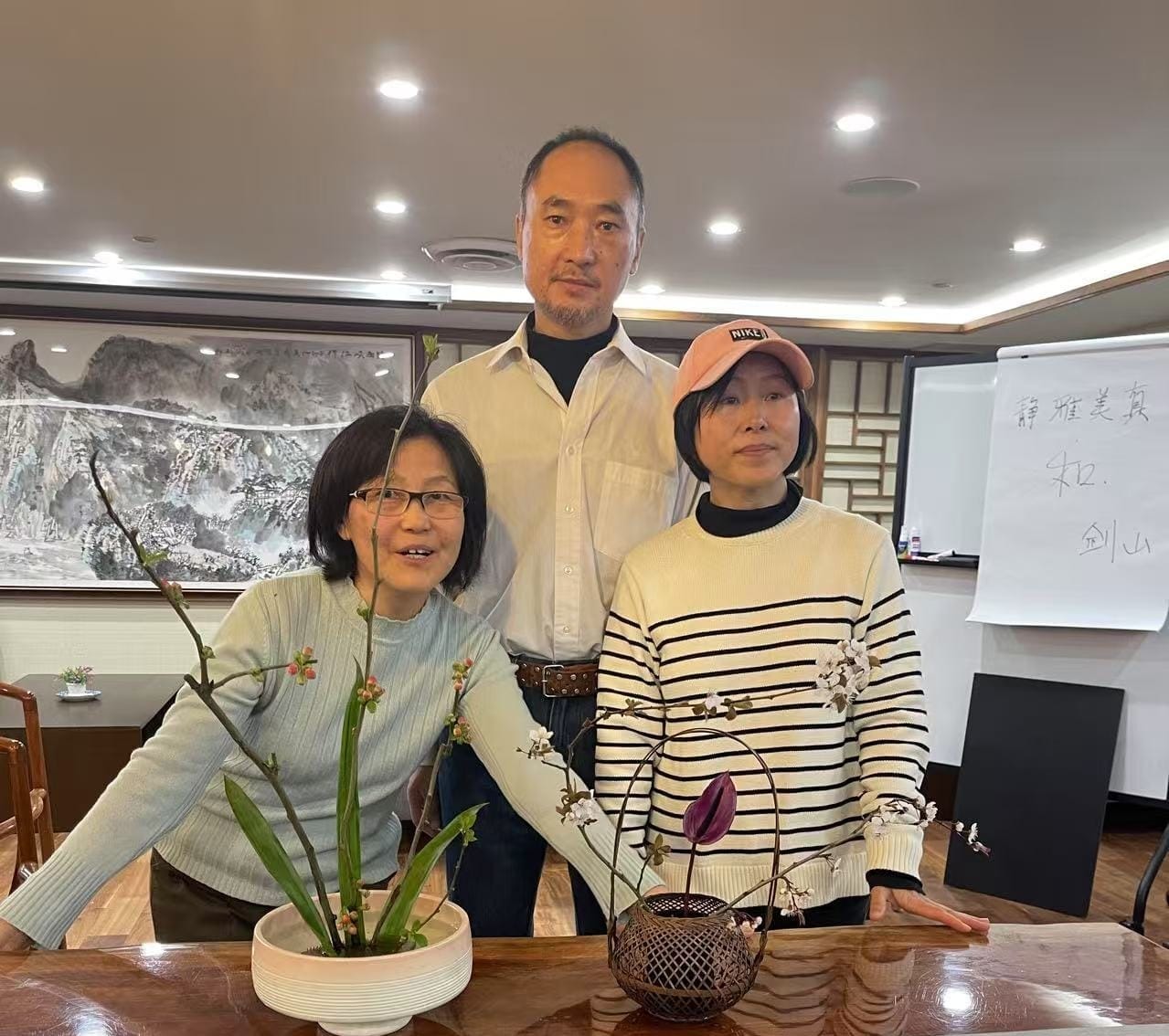 陈老师讲,花道的精神皆是花与人的相互成全。剪去三分繁复, 留白七分遐想, 它教人读懂残缺的圆满。 在盛开与凋零的缝隙里,窥见生命最坦率的模样。花道在 静, 雅, 美, 真, 和中凝练出克制而磅礴的生命力, 每一枝花都成为自己的宇宙。