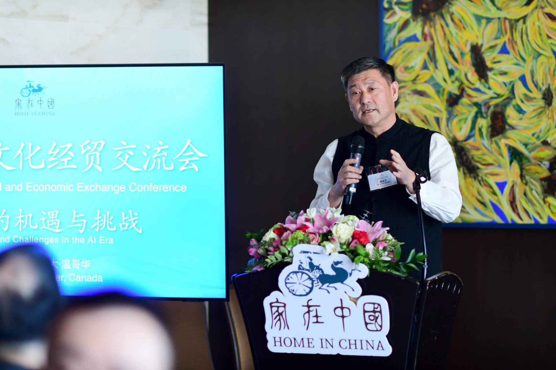 加拿大华人联合总会会长牛华先生在致辞中表达了对刘奇先生及"家在中国"理念的高度认同。他强调,家在中国是基于情怀而生,旨在通过民间外交促进中外文化经贸交流。华联会作为联合主办方,我们亲自参与了家在中国在沈阳、上海、纽约等地的活动,见证了其广泛的国际影响力。