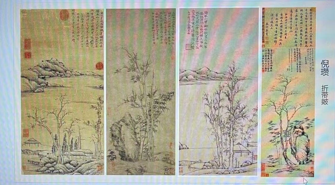 简淡之趣:倪瓒“逸笔草草,不求形似”,画面多疏林、空亭、浅水,营造“荒寒孤寂”之趣,隐喻对世俗的超脱。