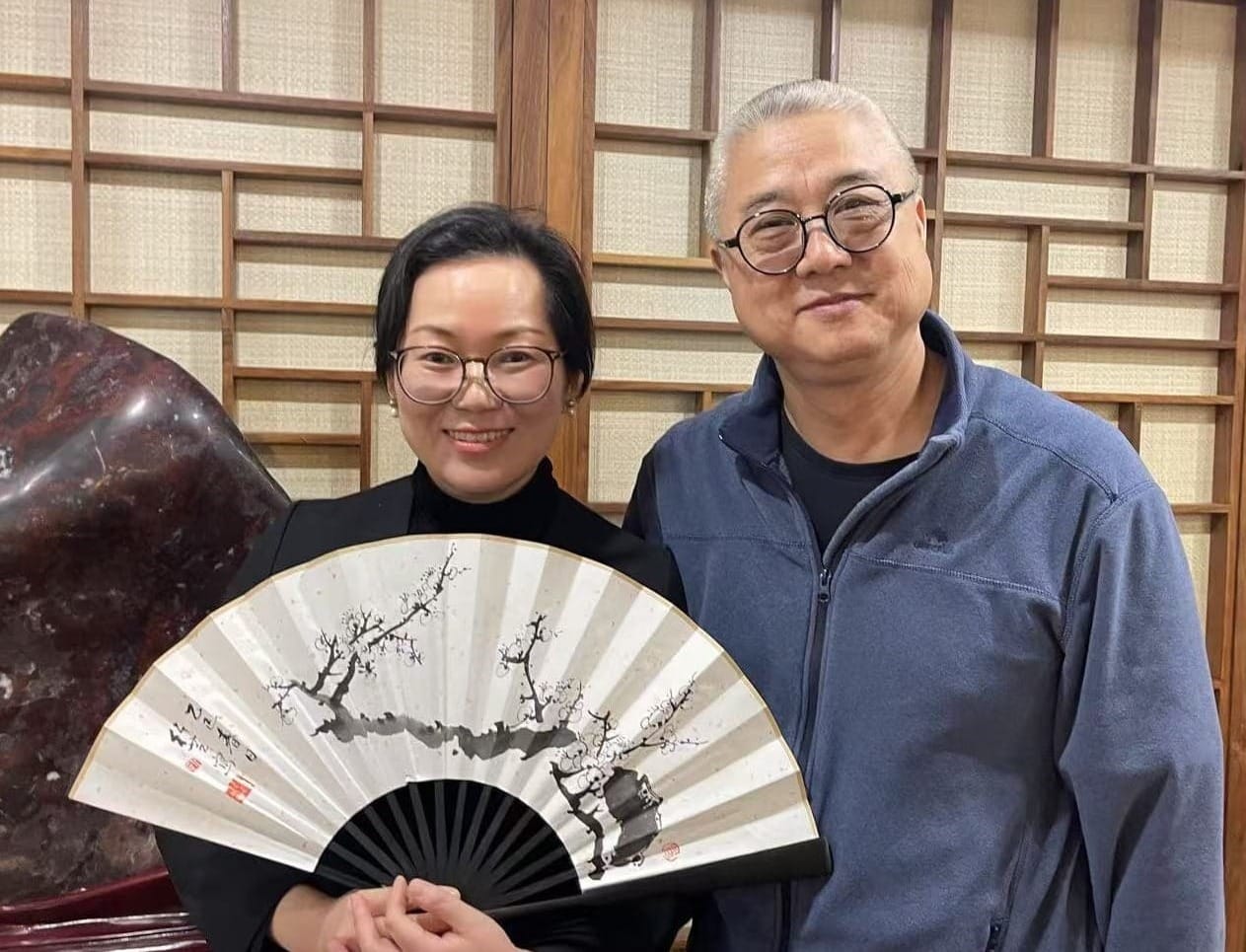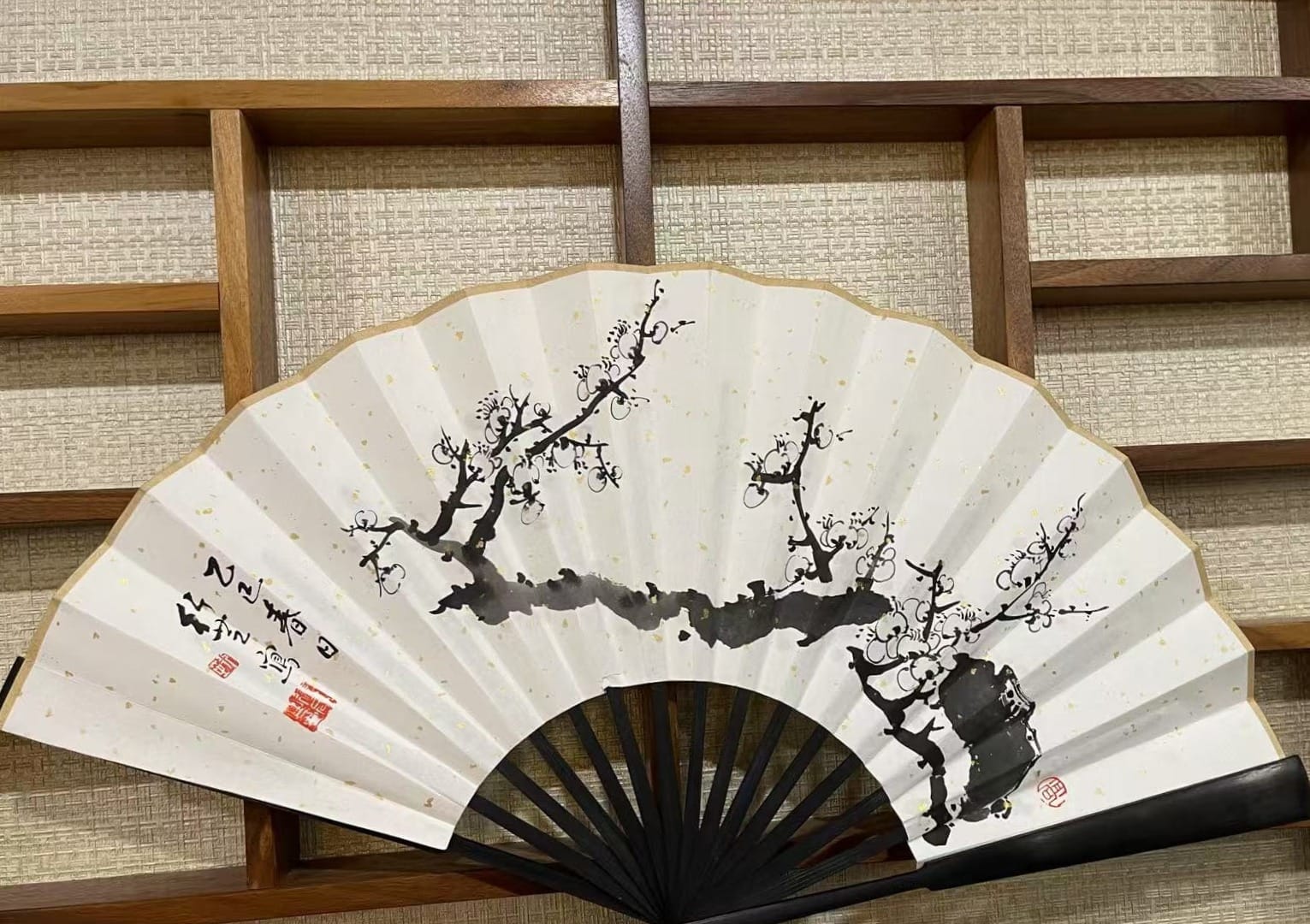为此,大家自发地要给予她表扬,愿意向她学习。于是,高建国老师代表了大家的心意专门给她画了副扇面,作为酬谢她辛劳的礼物。