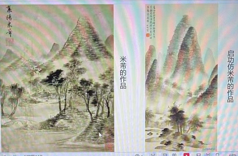 米芾“米点山水”以湿墨点染表现烟雨朦胧。