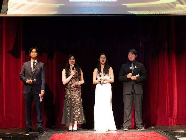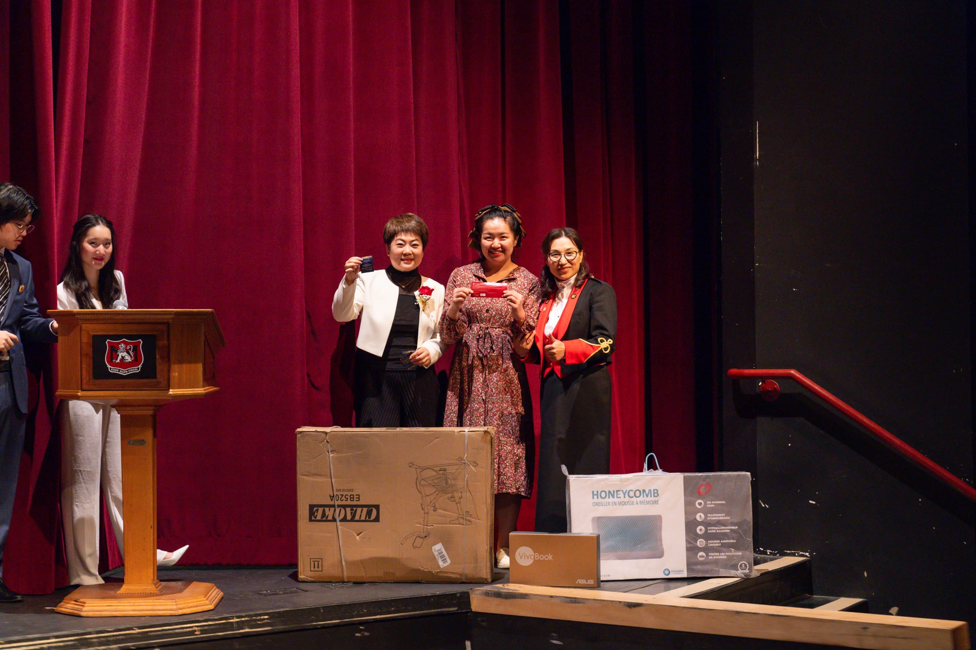2025主席Athena Yu、和外交大使Cynthia Yu,将奖杯交接给下一届领导团队。