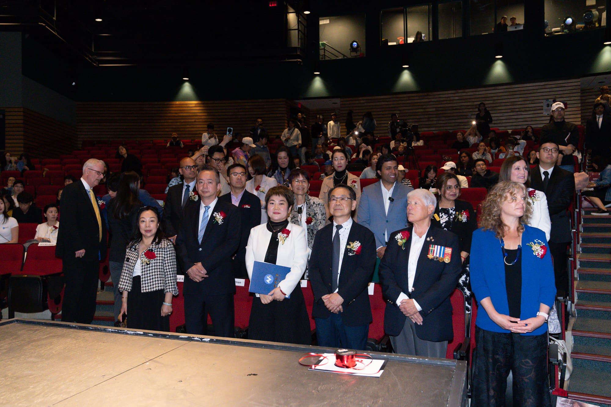 本次典礼由阳光基金会四位青年代表Athena Yu、Cynthia Yu、Kevin Wu与Eric Zeng担任主持。在庄严的原住民领土致敬仪式后,主持人简要介绍了阳光基金会的发展历程与使命:自2018年成立以来,基金会已在6个国家建立了6个分会30多个俱乐部,汇聚一万余名志愿者,累计组织三十余场大型公益活动,筹得十万余加元,用于支持本地与全球的医疗、教育和青少年发展项目。