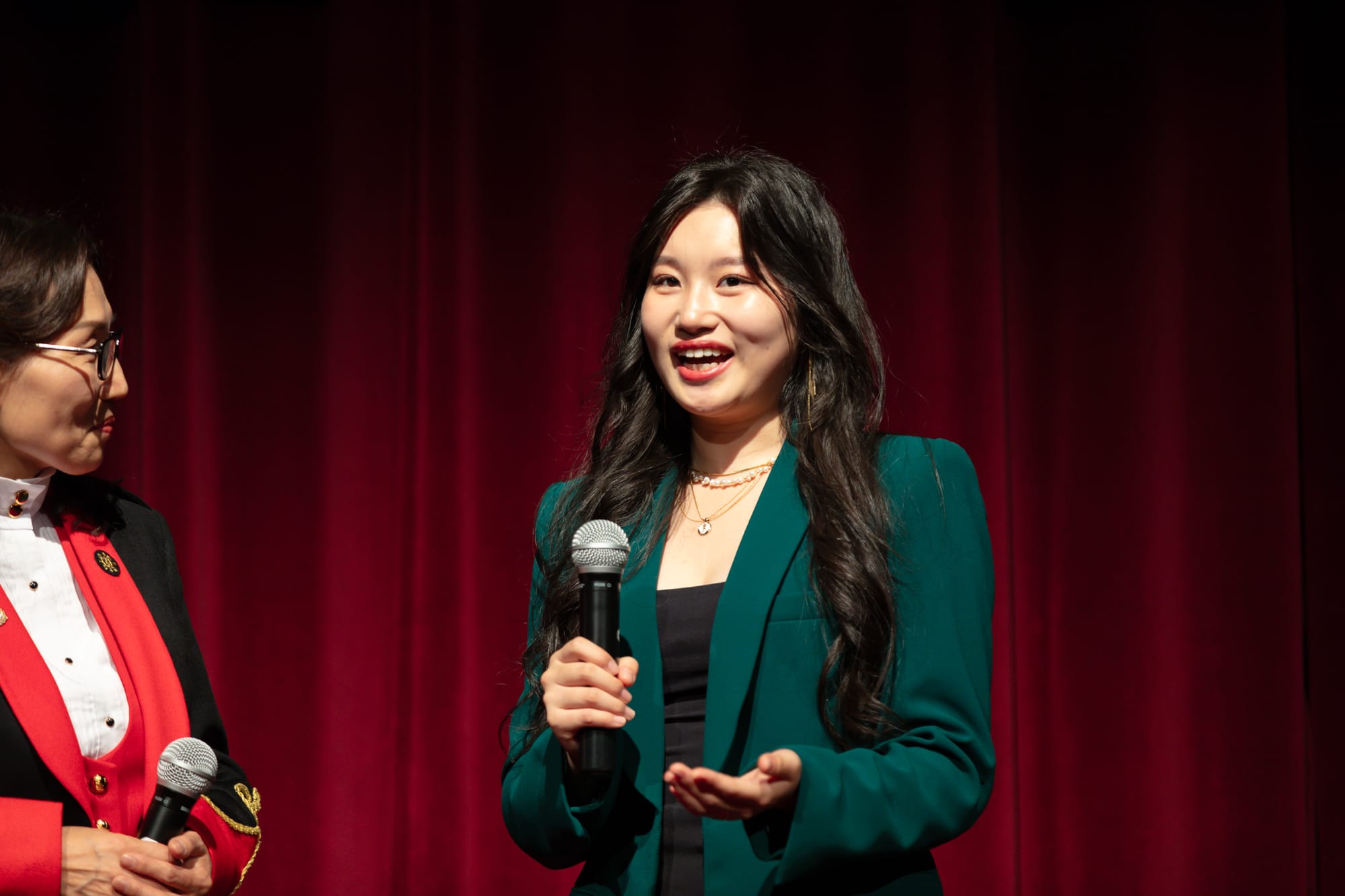 Athena接着致辞,她说,今天的活动对我来说意义非凡。因为我不仅是本届阳光基金会的主席,也是阳光基金会成长壮大的参与者和见证者。这些年里,我有幸见证了无数青少年的成长,也深入了解了他们背后的家庭故事。这些真实的经历与奉献精神不断激励着我,也让我们更加坚信青年人的力量。今天晚上,大家将听到一些青年领袖分享他们在过去一年中完成的项目,他们的努力和收获令人感动。我要向所有支持青少年的家庭致以最深的敬意,你们是孩子们身后最坚实的力量!谢谢你们!