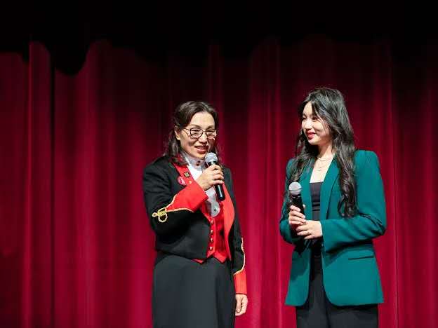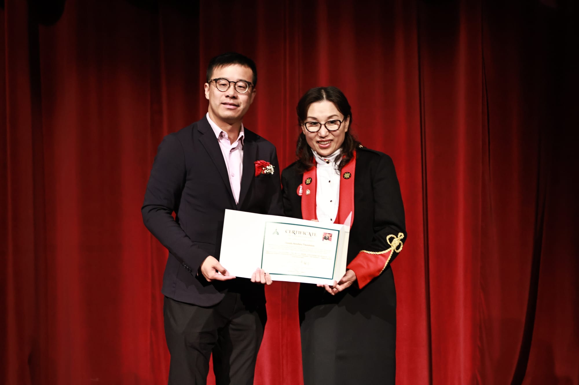 在掌声与期待中,典礼迎来了令人瞩目的本年度阳光基金会青年执行团队交接仪式。交接仪式是庄严而激动人心的时刻!卸任主席Athena Yu与外交大使Cynthia Yu共同将象征责任与荣耀的“主席奖杯”郑重递交给即将接棒的新一届领导人。奖杯的传递,不仅是一份职务的交接,更是理想与信念的延续,是一代代阳光青年之间的薪火相传。