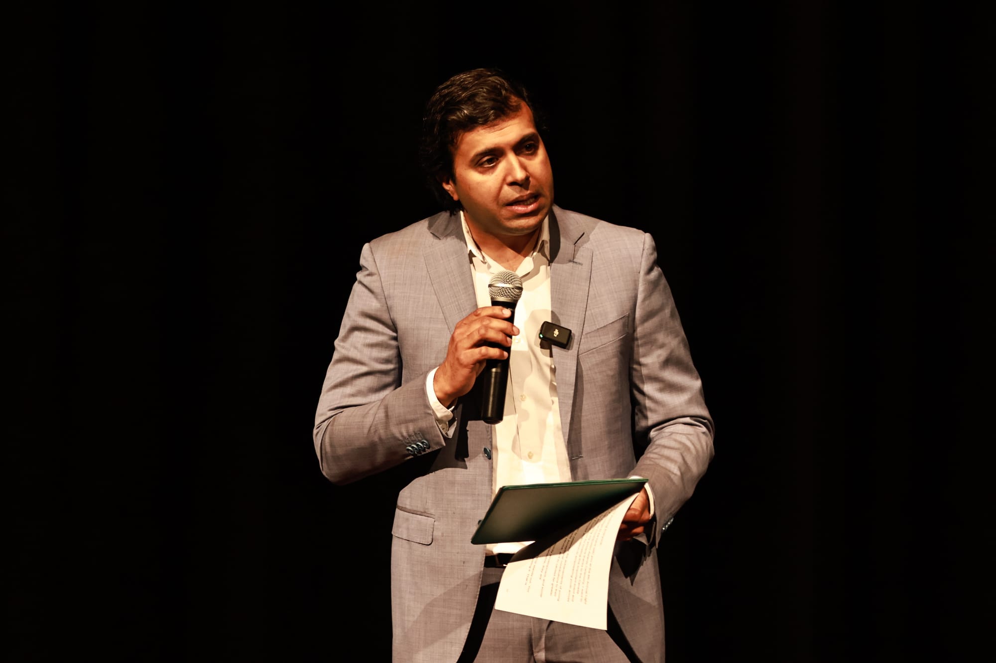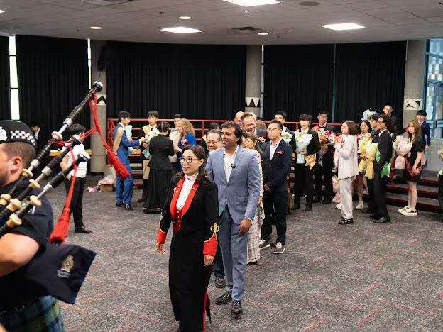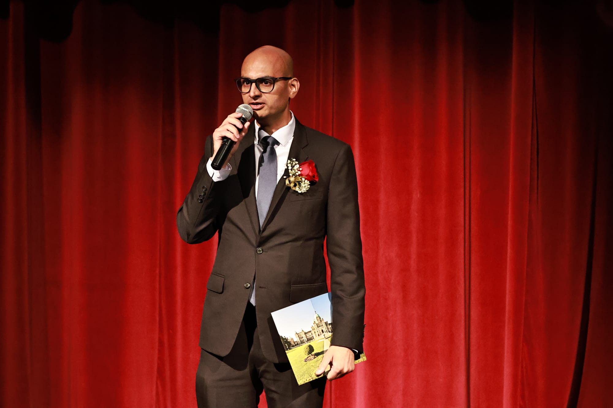 联邦国会议员Taleeb Noormohamed上台致辞,他说,今天我们齐聚一堂,共同庆祝一群杰出青年的成就。他们不仅为所在社区作出了突出贡献,更投身于公益事业,服务于远超自我之上的使命。你们以实际行动证明:变革并非等待而来,而是由你们亲手创造。你们的公益实践和社区行动,不只是值得表扬,更是社会不可或缺的力量。每一位今晚受到表彰的青年,都是未来社会希望的象征。你们的行动不仅影响了你们身边的人,更激励着整个社区。请记住,你们并不孤单。在你们身后,是整个社区对你们的支持与骄傲。未来不会从天而降,而是需要我们共同去建造!