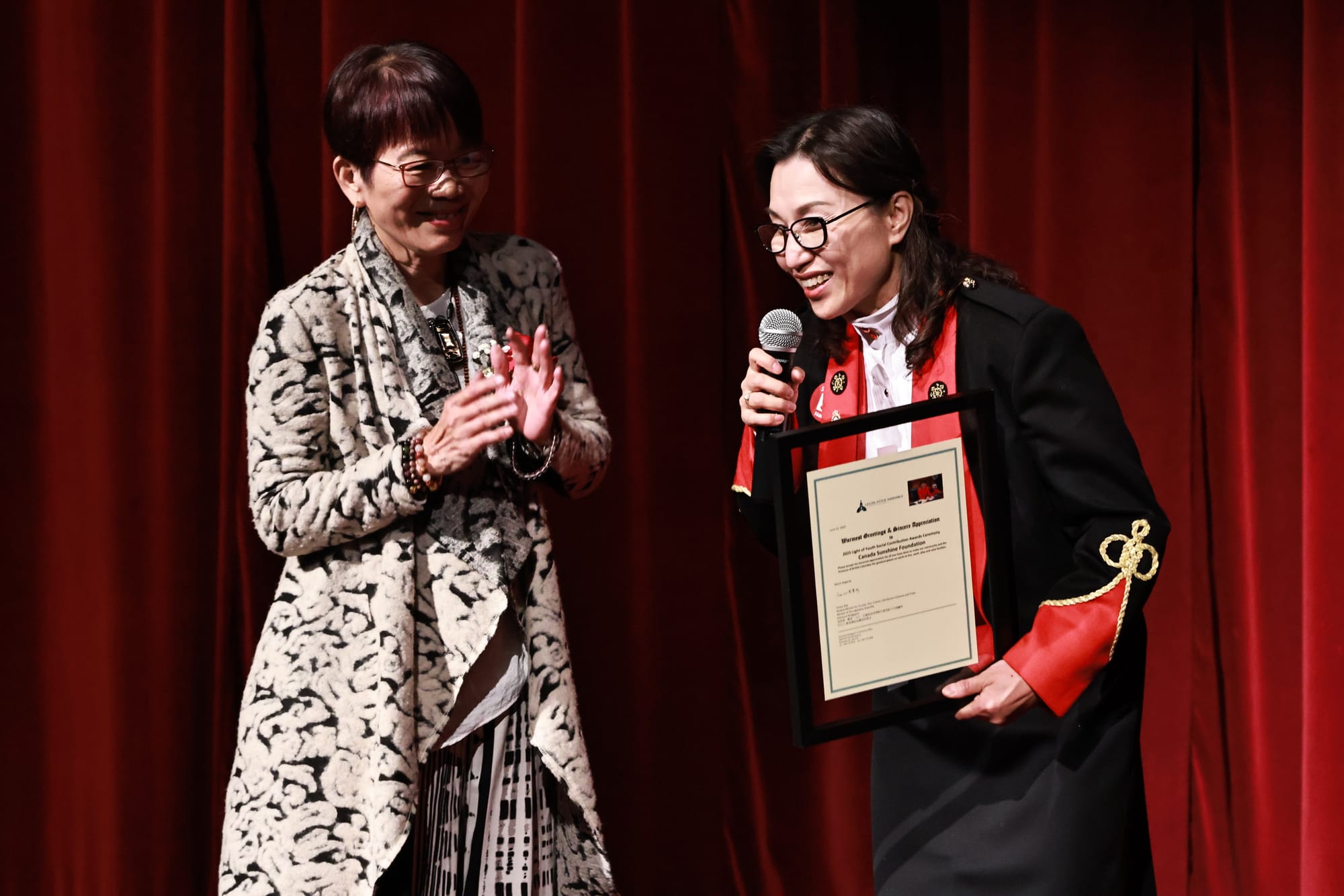 阳光基金会秘书Zoe Li与外联代表Cynthia Yu向赵婉莹女士颁发了特别感谢状,感谢她对青年公益事业的长期投入和对本次活动的冠名赞助支持。