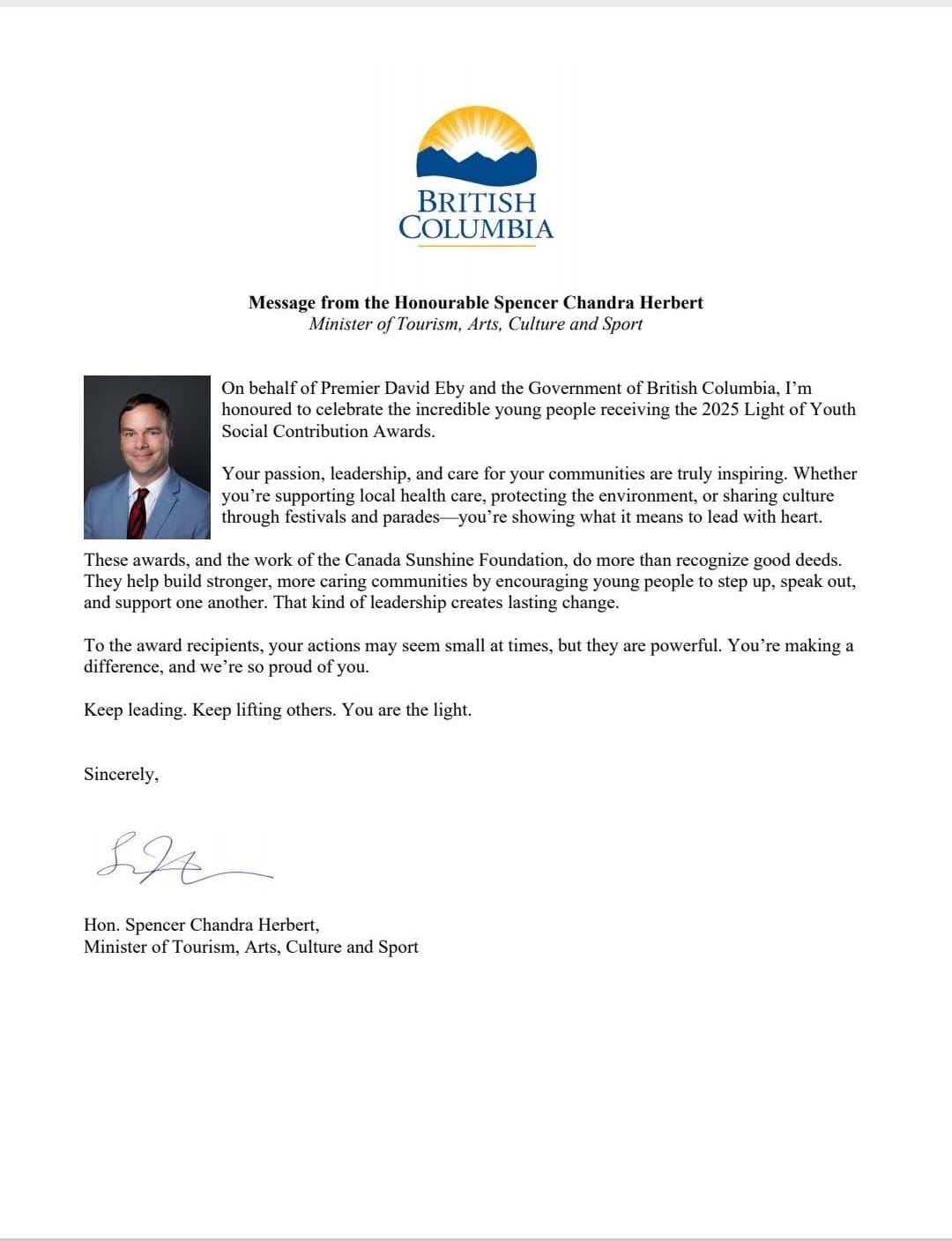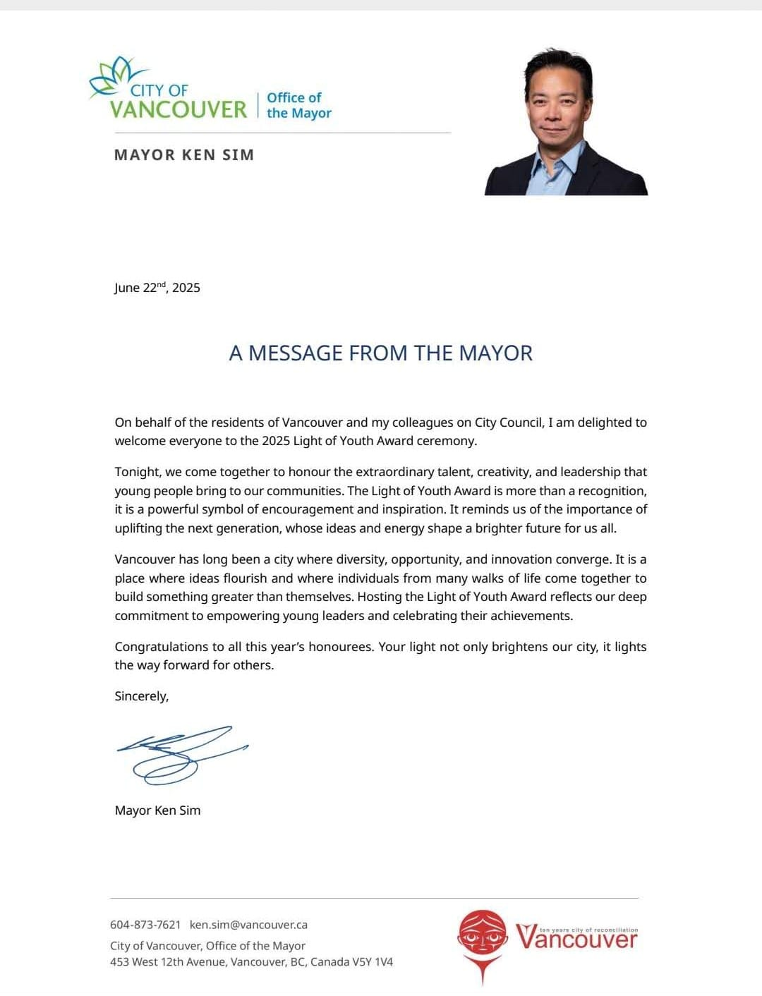 加拿大总理Mark Carney、卑诗省省长David Eby和温哥华市长Kim Sim都发来贺函, 对本次庆典表示热烈祝贺!