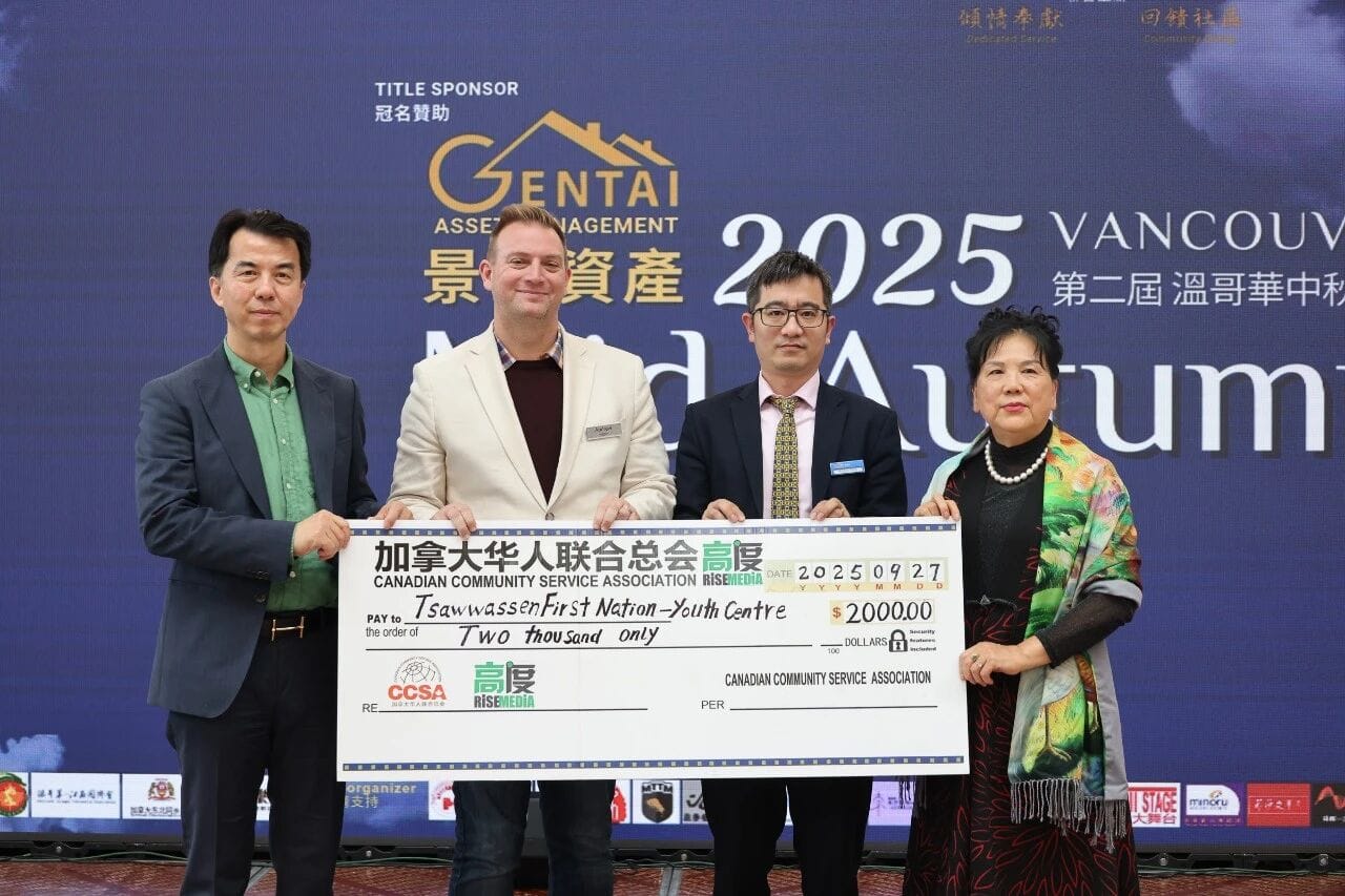 在2025年中秋庆典的辉煌现场,主办方携手各大赞助商捐赠2000加元给原住民青少年中心,彰显了本次盛会深厚的公益情怀与社会责任感。这笔捐款不仅是对社区青少年成长的有力支持,更是一次爱与希望的传递,激励着无数青年奋发向上。主办方郑重承诺,将持续关注青少年群体的成长与发展,携手社会各界共同助力构筑更加温暖、包容的社区环境。这份善举不仅温暖了人心,更凝聚了社区力量,诠释了“天涯共此时”庆典不仅是一场文化盛宴,更是爱与责任的华美交响。