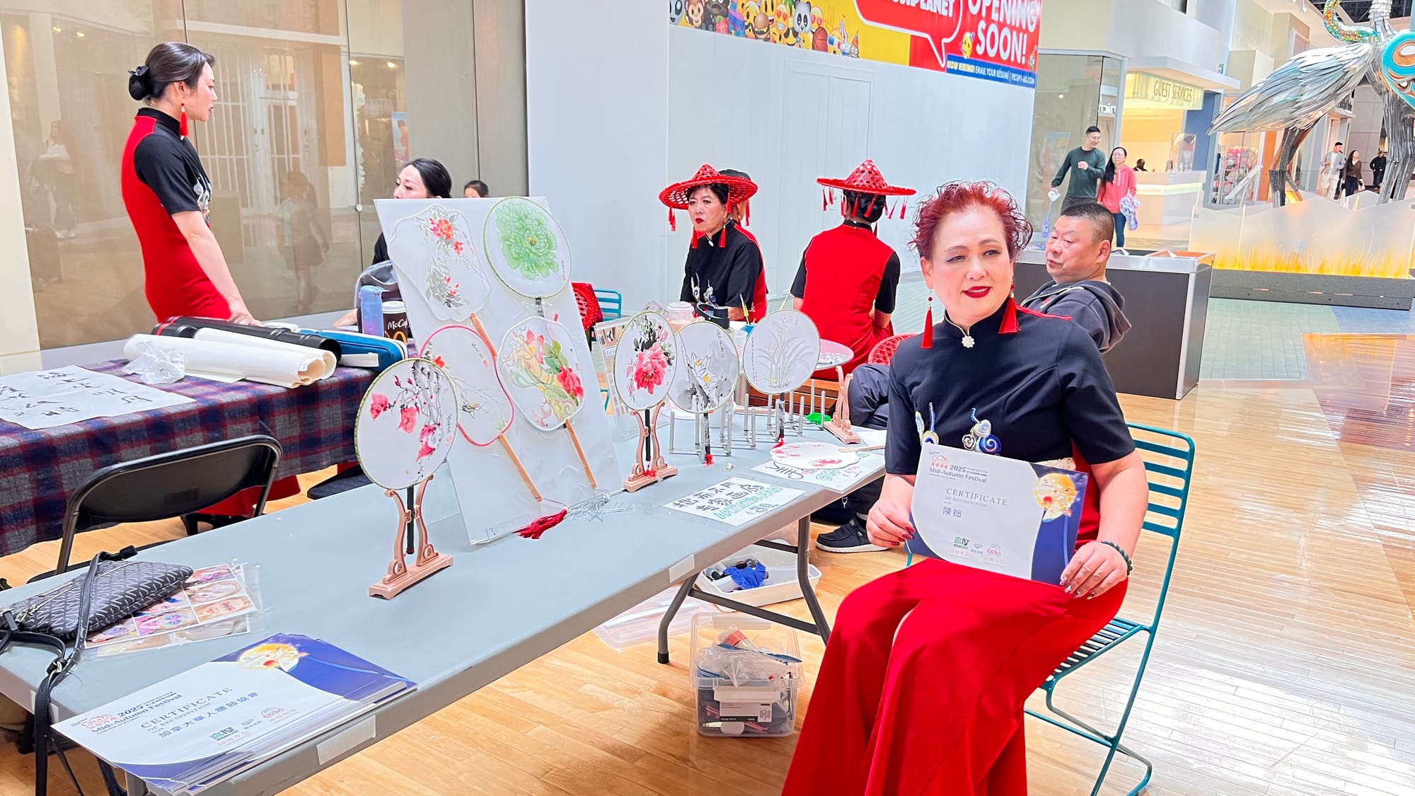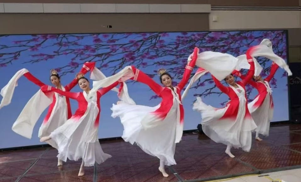 现场节目丰富多彩,从古筝琵琶合奏、京剧名段,到舞蹈、合唱和西洋音乐,展现出中西交融的艺术盛宴。除中国及本地民族的歌舞表演体现加拿大多元文化融合外,庆典还在观众席后方设置20多张文化与美食展示台,现场展示书画、茶艺、剪纸、糖画、手工艺与中式美食,并邀请观众亲身体验互动,营造出浓厚的节日氛围。