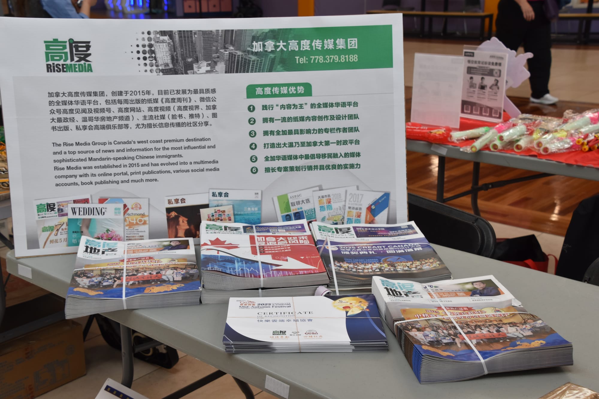 高度传媒总裁李靜忱女士表示:作为本次盛会的主办方之一,高度传媒始终肩负着连接温哥华华人社区的重任与使命!自创立之初,我们便矢志不渝地为社区提供最精准、最优质的信息服务。十年风雨兼程,高度传媒一路成长壮大,早已成为华人文化交流的坚实桥梁和闪亮名片。今年,我们满怀激情,继续为远离故土的华人搭建温馨团聚的舞台,让中秋这份千年传承的传统文化,在异乡生根发芽,焕发出更加璀璨的生命力。衷心感谢所有赞助商和合作伙伴的鼎力支持,是你们的无私奉献让这场文化盛宴得以精彩绽放!展望未来,高度传媒将坚守初心,不断创新突破,倾力打造更多精彩纷呈的文化盛事,让每一个温哥华的中秋夜都星光熠熠、情意绵绵,共赏明月,共叙乡情,共筑我们共同的华人家园!