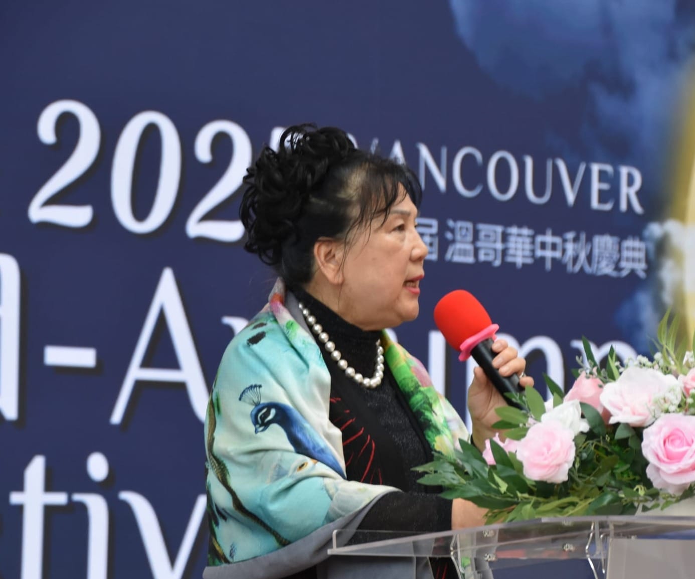 加拿大华人社团联席会执行副主席严丹红女士表示:非常荣幸能在花好月圆的美好时刻,与大家齐聚Tsawwassen Mills,共庆这一融合传统与现代的文化盛会。她指出,中秋节是中华民族最富诗意的传统节日之一,象征着团圆与亲情,也寄托着海外华人对故乡与亲人的深切思念。“天涯共此时”正道出了全球华人的共同心声。严副主席特别感谢主办单位、赞助商及商场的大力支持。她呼吁大家以月亮为媒、以歌声传情,让社区更加凝聚,共同创造属于在加华人的美好回忆。最后,她预祝本届中秋庆典圆满成功。