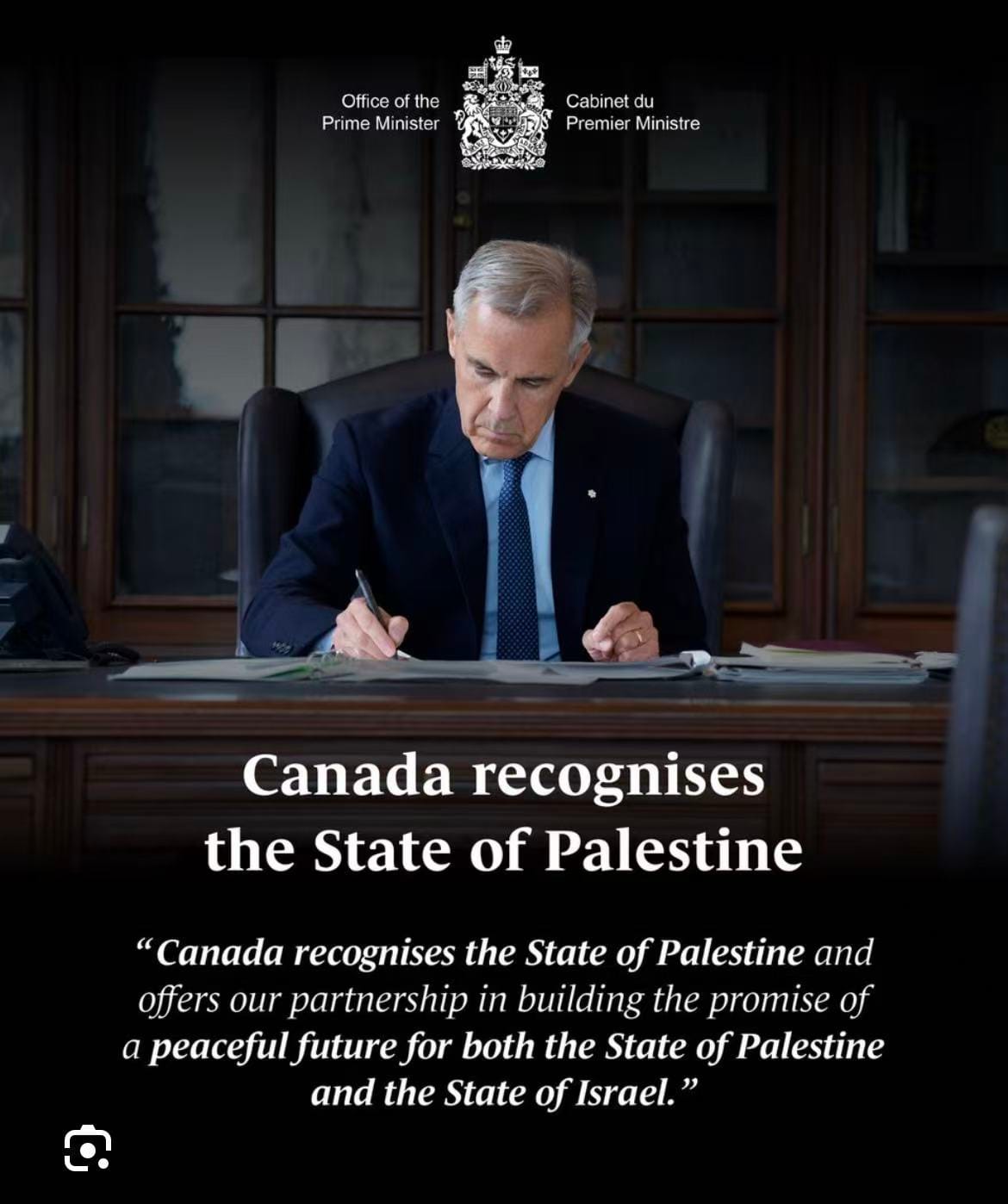 卡尼在签署相关行政命令后表示,承认巴勒斯坦国将为加拿大在国际舞台上创造更多的自主空间,并且更能通过自身力量进行外交战略布局,况且加拿大也不能再拖延承认,因为两国方案的可行性正在不断削弱。