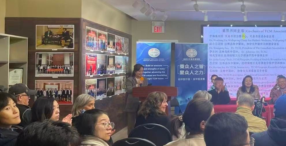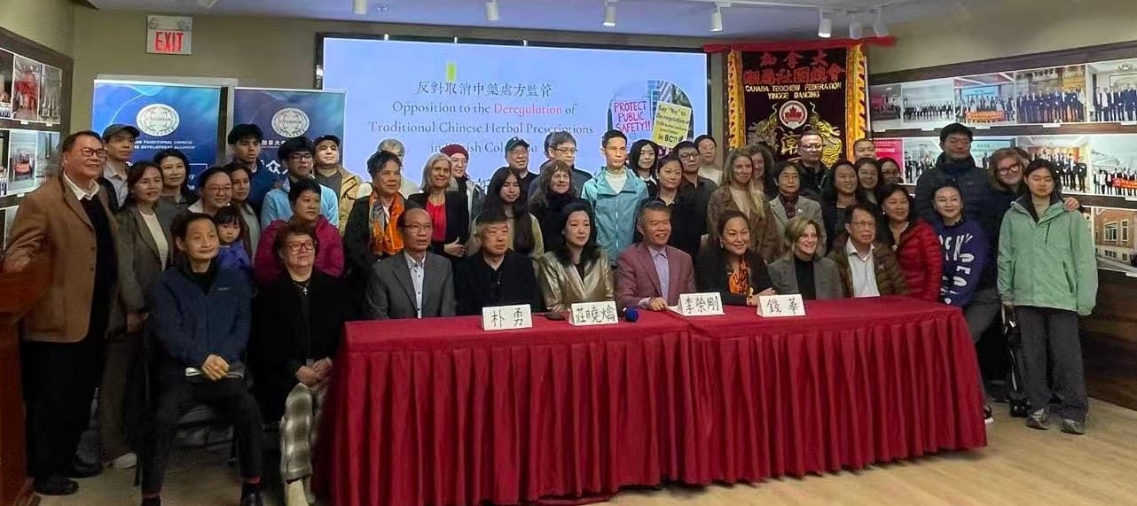 【加拿大高度传媒 Sonia Li 报道】2025年10月26日下午2点,在列治文No5路上的粵商總會會議廳,举办了《加拿大中醫發展聯盟反對取消中醫処方監管新聞發佈會》。