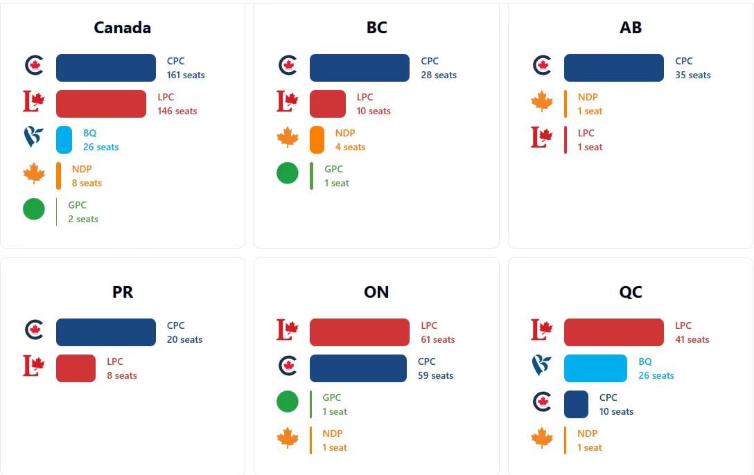 无独有偶,负责测算席位模拟的民调机构技术分析人士也指出,如果现在举行大选,结果将是保守党赢得少数政府,这也是春季大选后首次预测保守党领袖博励治将当选总理,之所以自由党政府面临如此挑战,根本原因在于民众对卡尼处理加拿大邮政等公共事业部门大罢工和对美关税贸易战谈判极其不满,认为自由党根本没能力捍卫本国和公众利益。