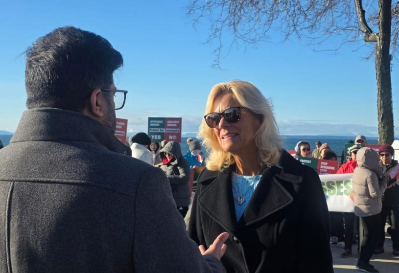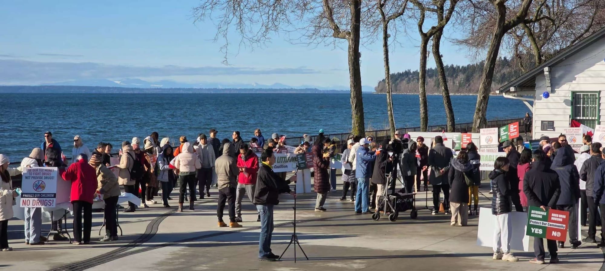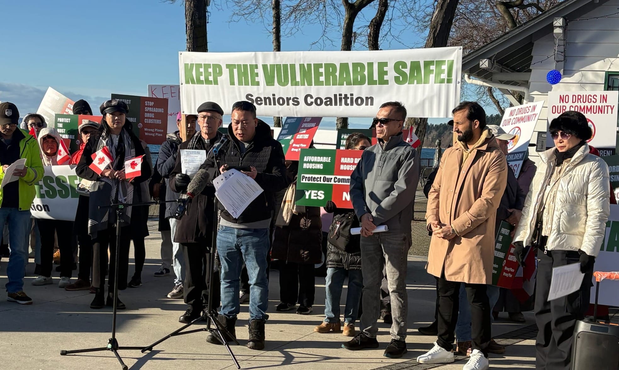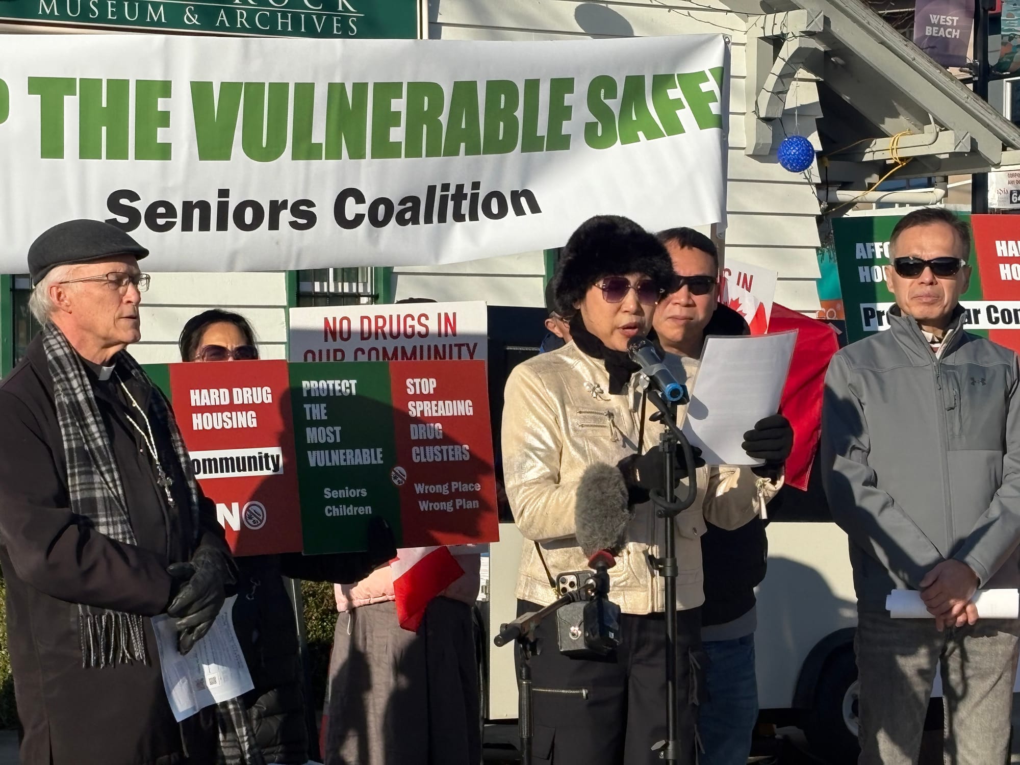 【加拿大高度传媒Lily Liu報道 】2026年1月5日上午,白石市上百居民在白石海濱長廊舉行和平示威,反對卑詩省政府強加在各城市內的「支援性房屋」(supportive housing) 项目,要求市政府從2026官方社區計畫(OCP)草案移除支援性房屋政策,並探討適合本地規模的替代方案。
