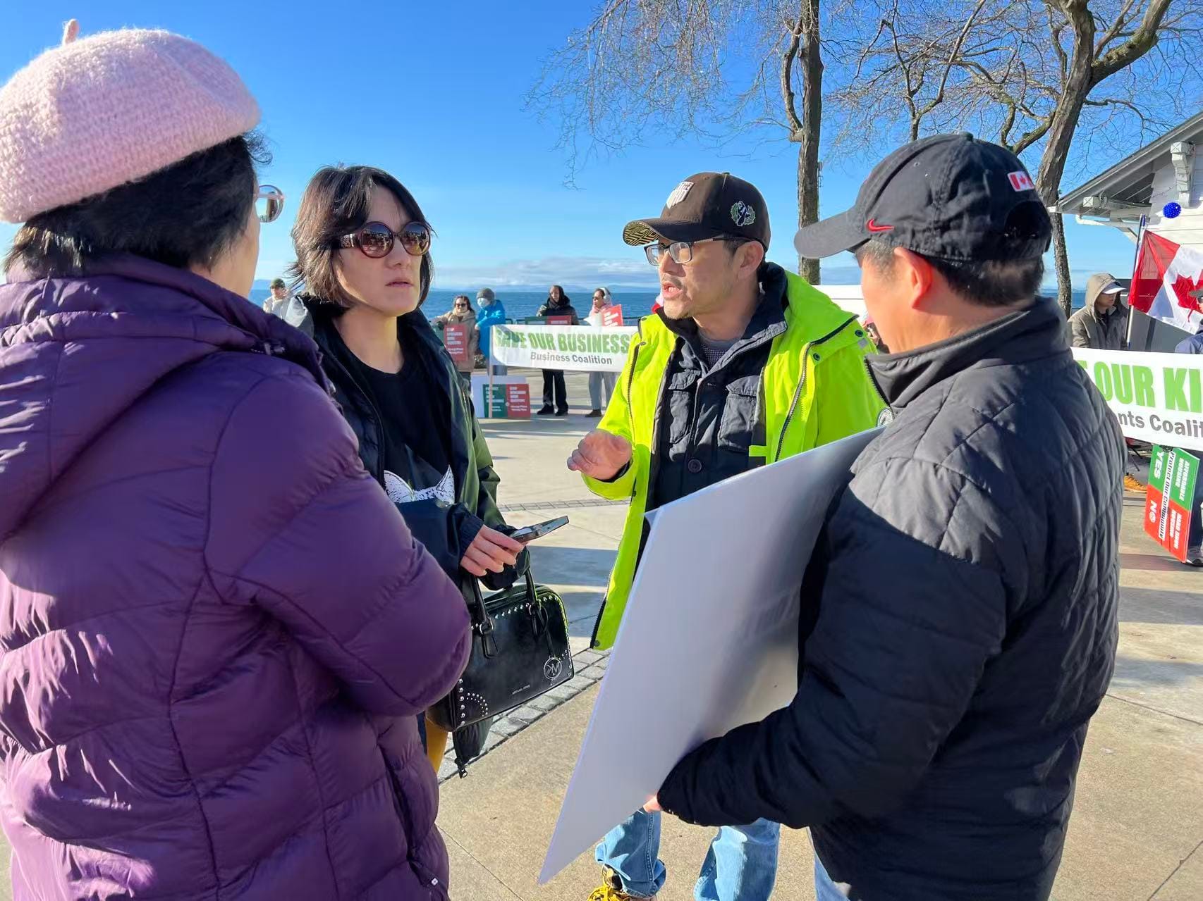 一對住在新西敏、到白石海濱散步的白人夫婦Bill和Micky全程聆聽集會者說法,他們說:「現在感覺很困惑,不知道是否該完全否定支援性房屋,因為的確有幫助到一些人。或許能把有毒癮者安置到專門的治療中心比較好,所以高貴林的Riverview Hospital精神健康醫院應該重新開放。」