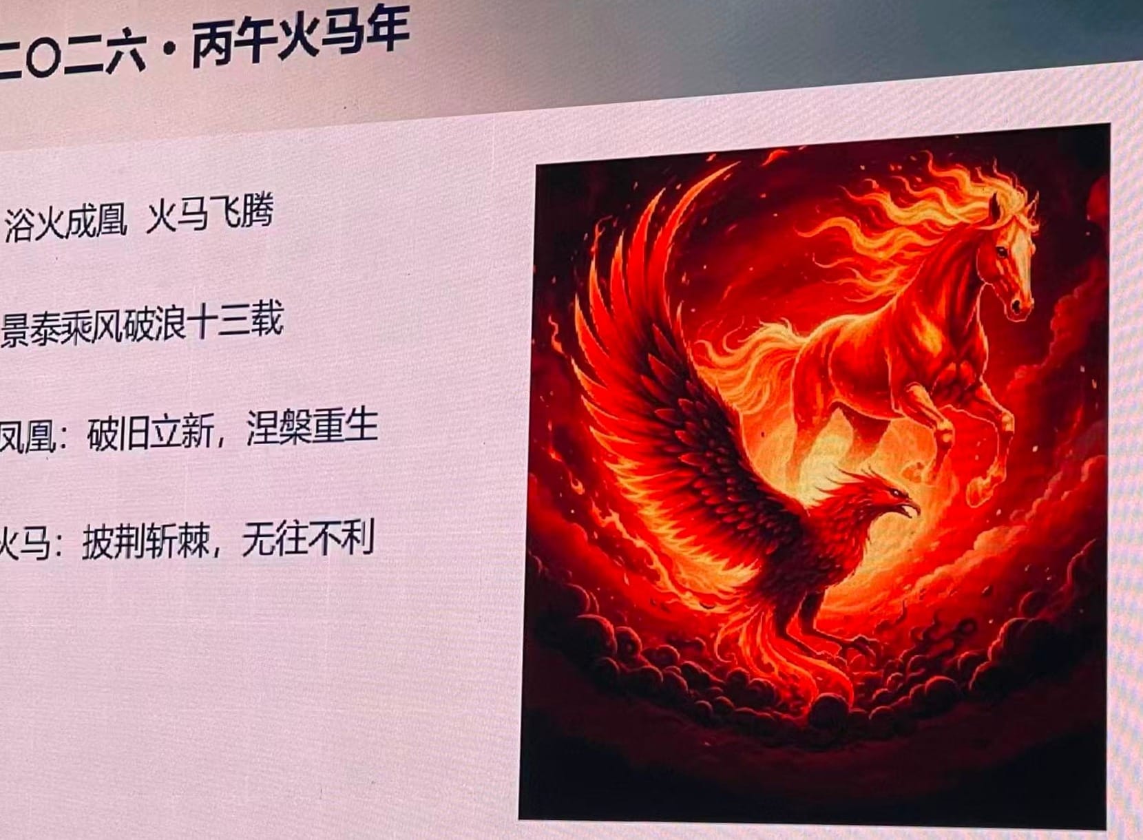 大会主题“十三载稳行高处,骉骉然奔腾逐鹿”,并以“凤凰涅槃、火马奔腾”作双重隐喻:凤凰象征“破旧立新、涅槃重生”,火马象征“披荆斩棘、无往不利”。