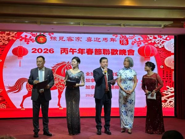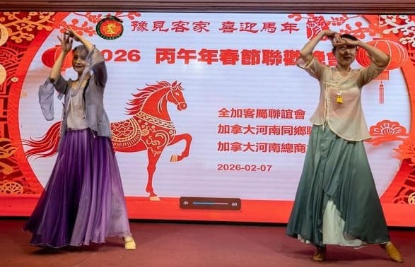 【高度传媒记者江传瑜报道,摄影Georgy Jiang, Lee Wu 及王元珑先生】2026年2月7日星期六(农历腊月二十),年味越来越浓,由全加客属联谊会与加拿大河南同乡联谊总会暨加拿大河南总商会首次联合主办的“豫见客家·喜迎马年”春节联欢晚会在列治文幸运酒家隆重举行。