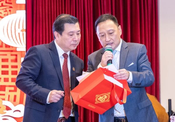 中华人民共和国驻温哥华总领馆代总领事曾智先生,代表总领馆向华人社区致以新春祝福,并高度评价全加客属联谊会,加拿大河南同乡联谊总会暨加拿大河南总商会,在过去为推动加中文化交流,商贸往来,丰富社区社会文化活动做出的贡献。曾智先生说:值此春意渐浓,农历新年来临,喜看中加关系回暖,乐见华人社团在促进中加文化交流中更加发挥桥梁作用,加强中加合作。并祝福在座的各位客家乡亲,河南老乡春节万事如意。