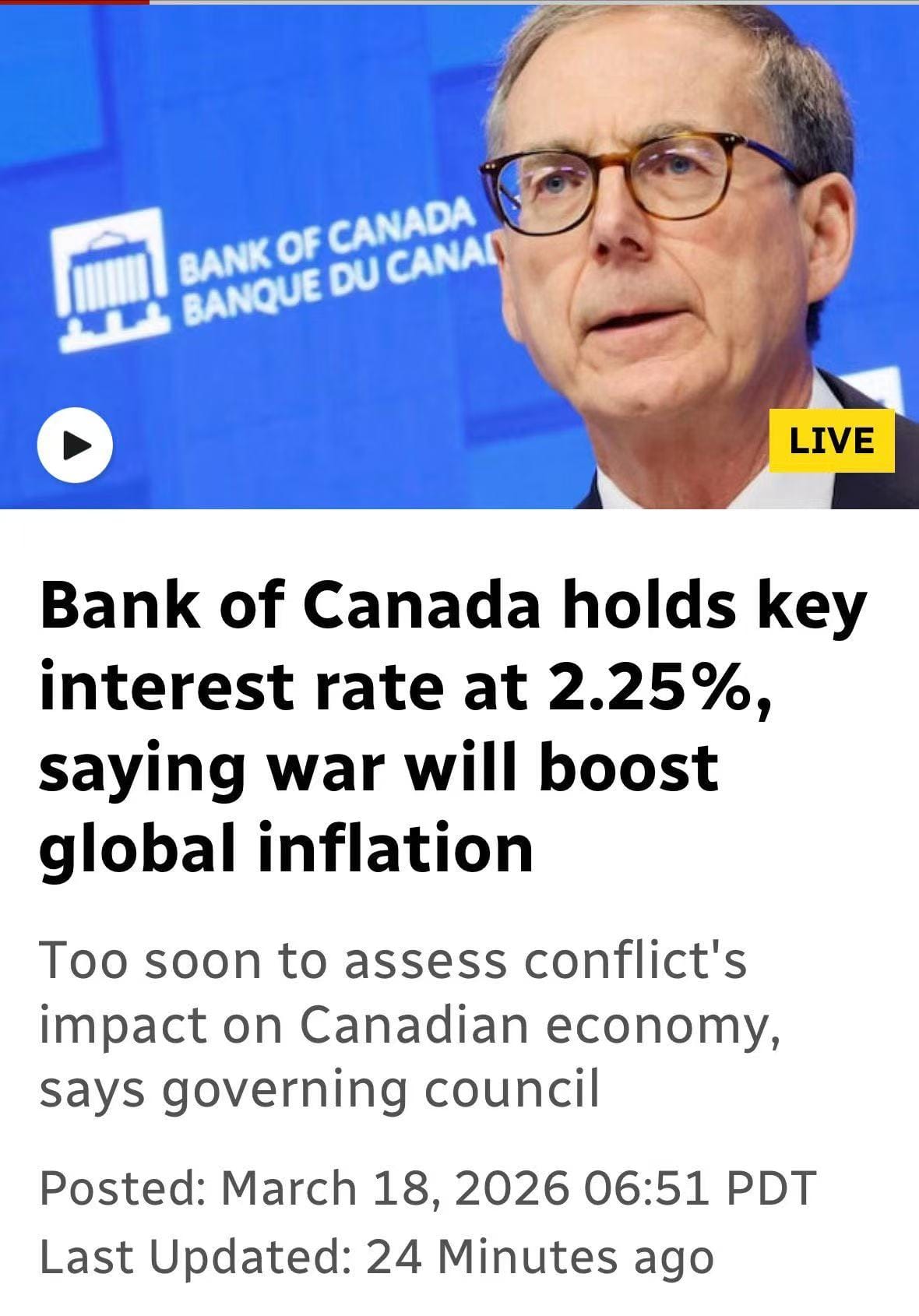 油价飙升、关税重压、中东地缘冲突彻底打乱全球能源格局,BC省新一轮全面涨价潮已经无可避免。加拿大央行今日宣布基准利率维持2.25%不变,表面风平浪静,实则整个加拿大经济,都在悬崖边走钢丝。