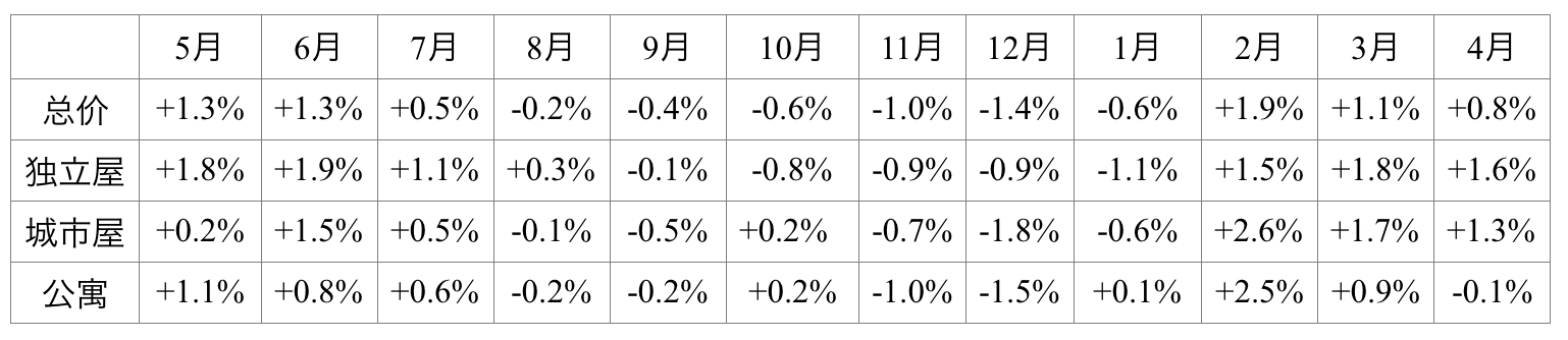 从上面的列表可以看出,中心城区的独立屋价格目前是连涨的态势。