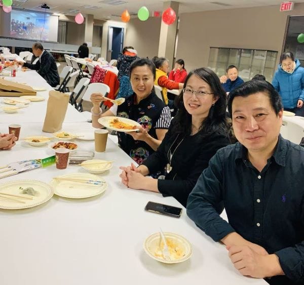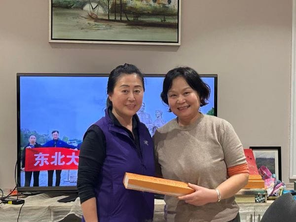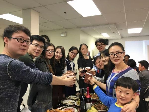 副会长魏克风住的近,与先生一起从家里带来了酸菜鱼,腊肠饭;游子李剑秋校友的酱猪蹄;赵宙的南昌拌粉;王光丽的梅干菜烧肉;郑炳玉的东北凉皮,焖羊肉;高霞的泰式酸辣虾;陈明武的湖南干笋炒肉;李春强的广式烧腊;会长黄春荣的葱油饼,葡萄酒;还有姜宏达校友,吴利生校友,匡晋校友,崔韬校友,王宁生校友,孙辉校友,钱伟民校友,孙元良校友,David Chen校友,Frank Chen校友等带来的美食美酒等等。一场欣赏品尝东南西北荟萃的美食,美酒,美味的迎新聚会,大家欢声笑语,喜气洋洋。在开席之前,校友们还聚在一起观看了东北大学校友总会发来的祝福视频,观看了东北大学宣传片,以及聆听了东北大学校歌。让我们这群远在万里之外的校友们,与母校东北大学更加紧密联系在一起。
