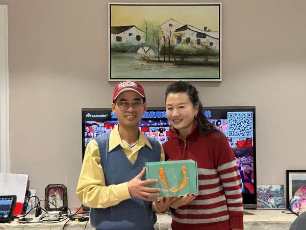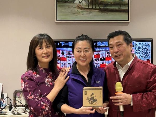 最开心的当然总是抽奖活动。校友们各自带来准备好的精美奖品,堆满房间一角。校友李剑秋(康讯旅游)主持抽奖环节,奖品丰富,有:非遗文化的泥人张,皮影;北京冬奥会纪念币;名瓷茶器;加拿大瑞柯兰冰酒;大礼包;名贵围巾...当然,还有WeHappy资讯平台的电脑现金抽奖。感谢北美负责人边志强先生,现场电脑抽奖,高科技紧凑快捷便利。 WeHappy 是一个海外华人自己的中文品牌媒体和平台,主要融个人分享,帮企业宣传,集新闻报道于一体的综合平台。