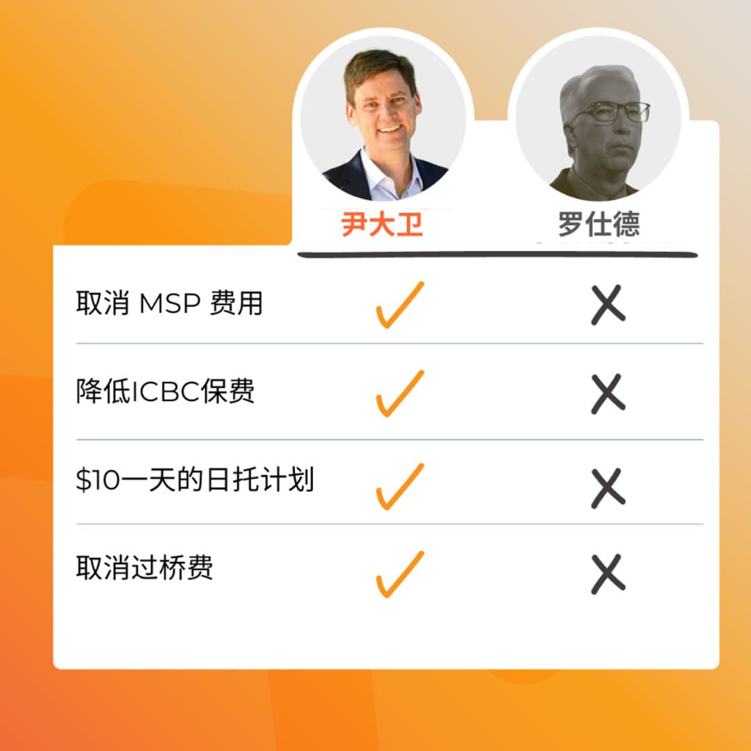 尹大卫和卑詩新民主党取消医疗保险费用、改革ICBC、扩大负担得起的儿童保育服务、取消桥梁收费以及为青少年提供免费公共交通——卑詩新民主党大幅降低了卑诗省居民的生活成本。这些举措体现了卑詩新民主党支持普通家庭、改善省级公共服务的承诺,使生活更加实惠和可持续。