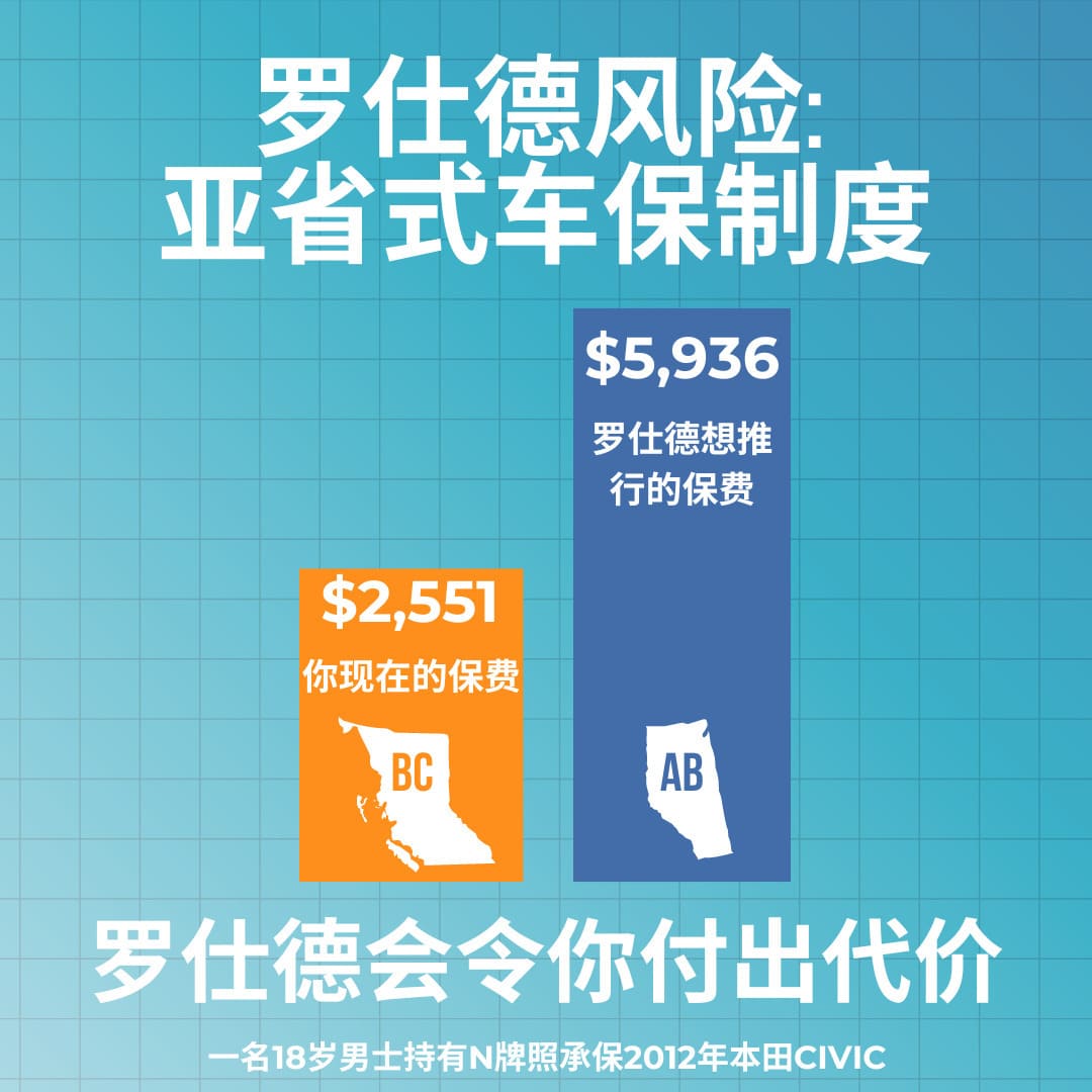 罗仕德想要引入亚省式的私人保险制度。这一举动只会服务于最富有的2%人群,再次迫使普通家庭承担不必要的成本。这些保险改革原本是为了降低费用,但羅仕德想要推翻这一点,将我们的辛苦钱当作玩物。