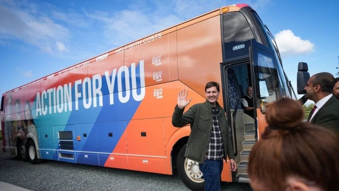 加拿大卑诗省选9月21日星期六正式开始竞选期,而卑诗新民主党(BC NDP)党领尹大卫(David Eby)已经在9月20日周五展开他的巴士之旅,并在此次省选大温地区的超级战区素里起步,竞选巴士车身贴上“为你行动”、“你买得起的房屋”和“更好的医疗保健”等改善民生的口号。