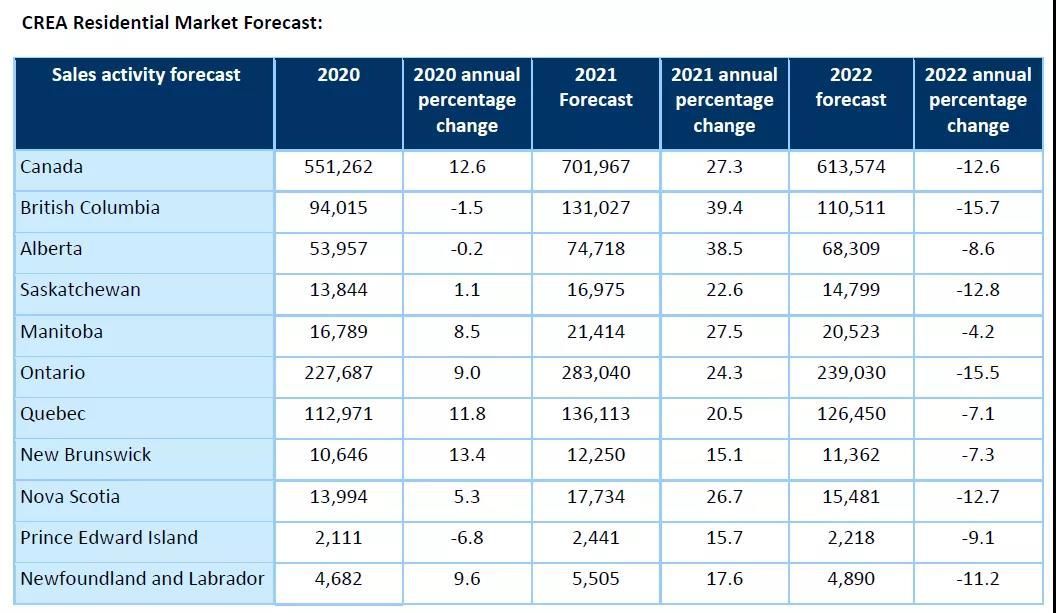 至少加拿大房地产协会(CREA)刚刚公布的数据显示,2021年余下的9个多月里,加拿大房地产市场还是量价一起大涨,但2022年房价增速会放缓,成交量则会出现负增长。