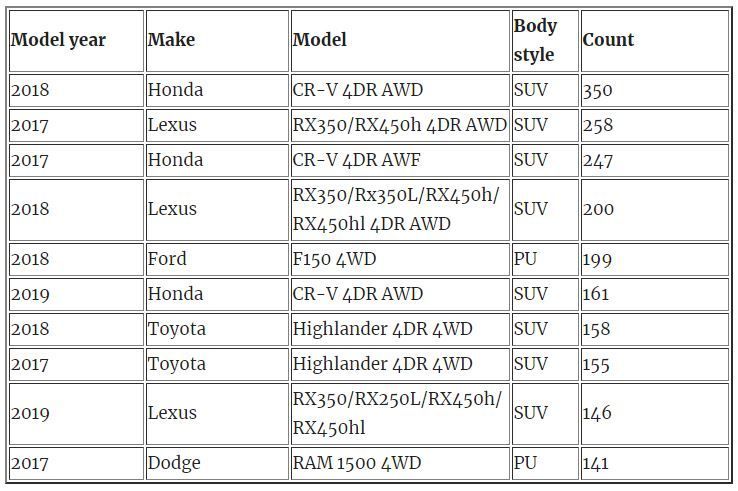 日前,加拿大保险局(Insurance Bureau of Canada)公布了2020年度加拿大最常被盗的车辆排行榜。SUV成为贼人最爱下手的目标,而且他们格外偏爱日系SUV。