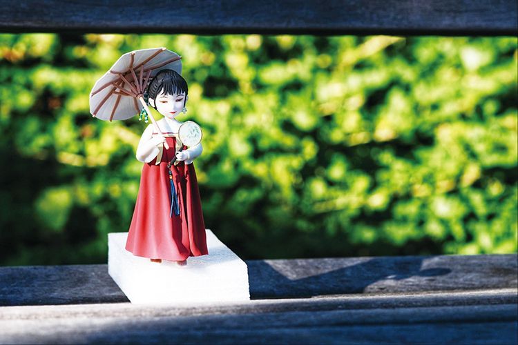 她家有个小小的院子,里面种了黄瓜、西红柿、扁豆、玉米等等,我走的时候,她总是让我等一下,看看有什么熟了可以给我带走,我觉得她院子里的每一颗蔬菜都很幸福。当然,最幸福的是我,有一天,我拍了一组古装照,发了朋友圈,她看了告诉我,我打算捏一个你。我激动得差点破了音说:真的吗?那快快捏。几天之后,我就被她捏出来了。我只想说,太夸张了,连我手里扇子上的小花都一模一样。于是我思考了一个问题,有一天,等我老了,我只能是一个老人,而她,是一位被人尊重的手工老艺人。我庆幸自己在这位老艺人年轻时就吃过她亲手做的小饼干,所以我真的可能会有一天和一群小朋友坐在一起,跟她学习做手工。我暂时想不出还有什么比朋友过生日亲手捏一个朋友然后送给他们更酷的事儿了。当然对于手和猪脚一样苯的我来说这是个愿望。
