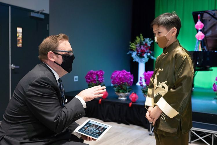 音乐停止了,演奏结束了。学生家长代表Michael的父亲薛先生分享了孩子在学琴路上的心灵感悟。他说道:首先,学琴是一个长久的过程。重要的是培养孩子终生对音乐的热爱。其次,家长是孩子的陪伴者,而不是施号发令者。在陪伴孩子练琴的过程中,家长才能体会到孩子练琴的辛苦。而陪着孩子练琴的时光也因此成为了最美的亲子时光。最后,遇到一位好老师是琴童最幸运的事。因为好的老师帮助孩子点燃梦想之灯。