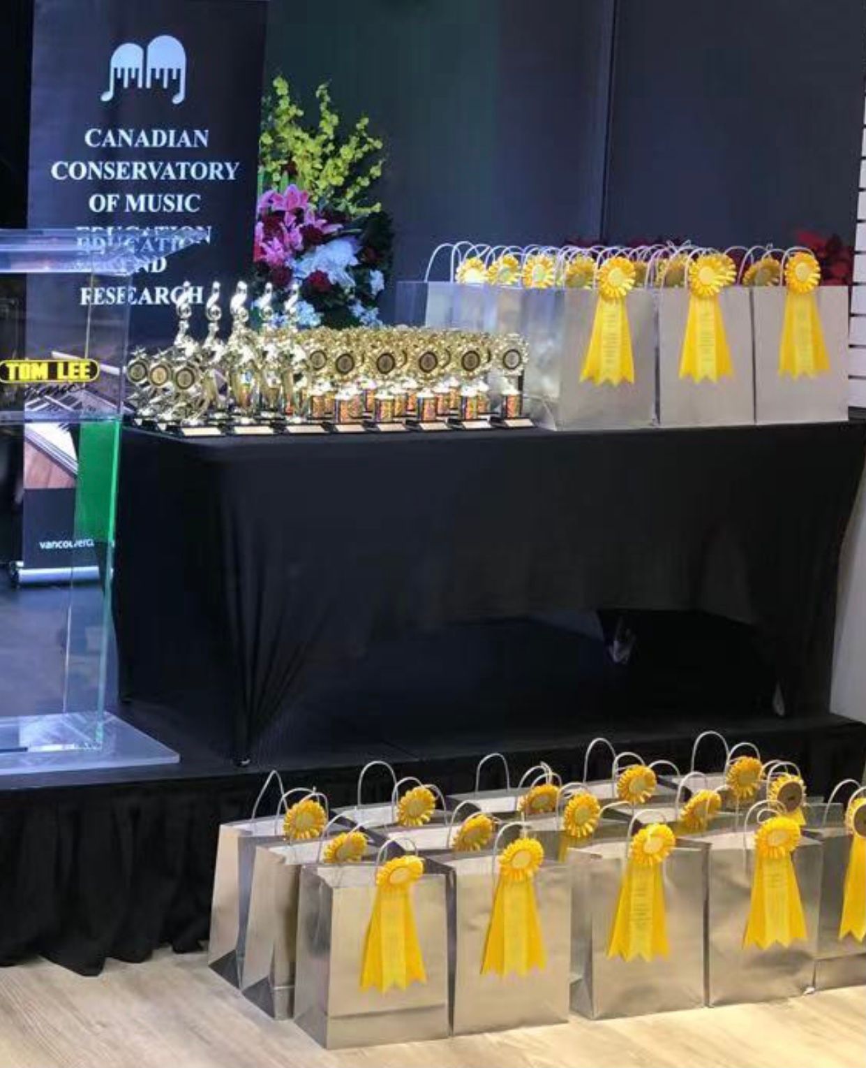 在最后的颁奖环节, Una 终于出现在大家的面前。她一如既往的优雅大方,她怀着感恩的心将感谢送给可爱的孩子们,送给支持孩子学习的家长们,还有这场演奏会的幕后工作人员们以及这场演奏会的发起者Hebe 同学,而这次活动将近3000加币的筹款她也将全部捐赠于Eagle Ridge 鹰岭医院基金会。 记得Una 常说,生活是多么的爱她,她又是多么的热爱生活。她热爱音乐,更热爱音乐教学。在教学的过程中,她分享的不是音符,而是她的感受,经历,经验,故事与人生!她希望孩子们可以像她一样热爱音乐,享受学习音乐-这全世界共同的语言的过程。在给孩子颁发奖杯的时候,她如数家珍的介绍着每一个孩子。原来,这些孩子们学琴路上的每一点小小进步,每一个小小故事,她都看在眼里,记在心里。我知道在Una心里,每个孩子都是独一无二的艺术品,都是珍宝。她用爱和热情去为孩子们量身定做适合他们的作品,并且鼓励孩子带着热情和想象去创作作品,而不是简单的模仿。