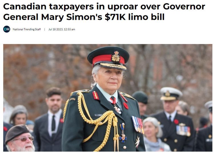 加拿大总督玛丽·西蒙花纳税人的钱坐豪车,吃大餐。(图自 daily hive)